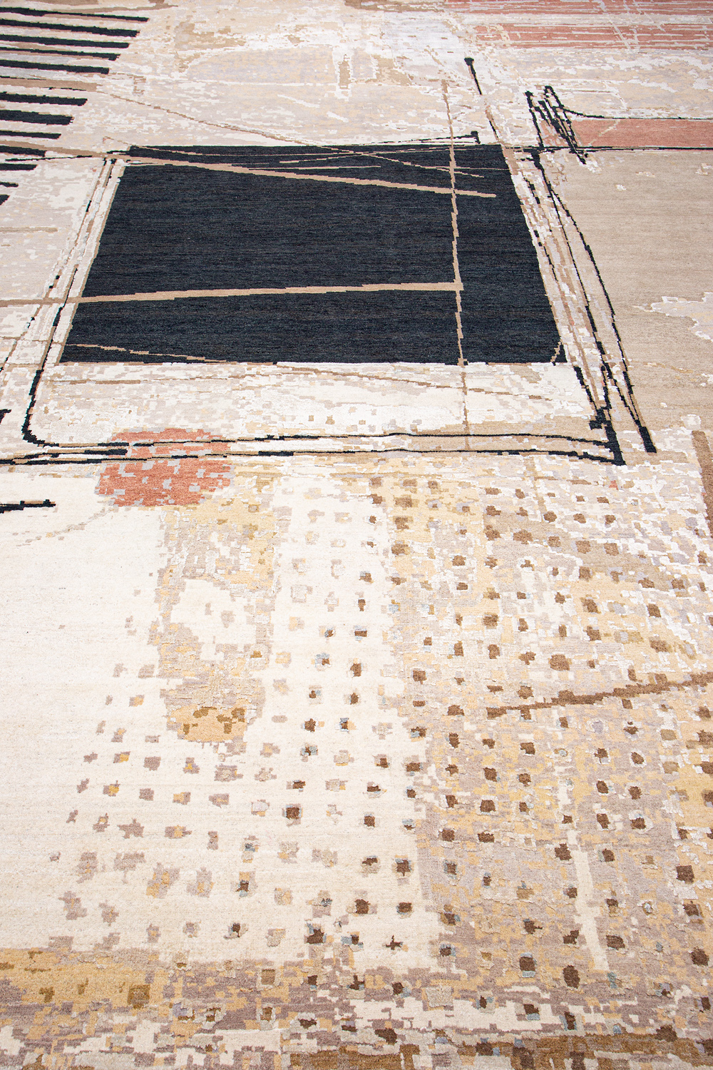 Дизайн ковров напоминает современные полотна художников-абстракционистов и производит столь же яркое и незабываемое впечатление в интерьере. Живописный эффект и необычная фактура зависят от выбора материала: натуральной шерсти, шёлка и от их сочетаний друг с другом. Ковры ткутся вручную в лучших мастерских Индии и Пакистана.
