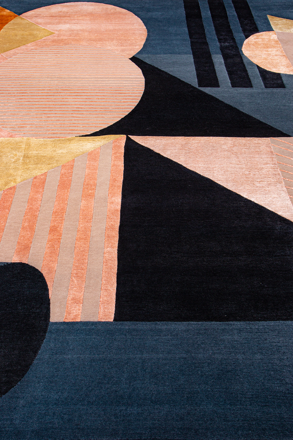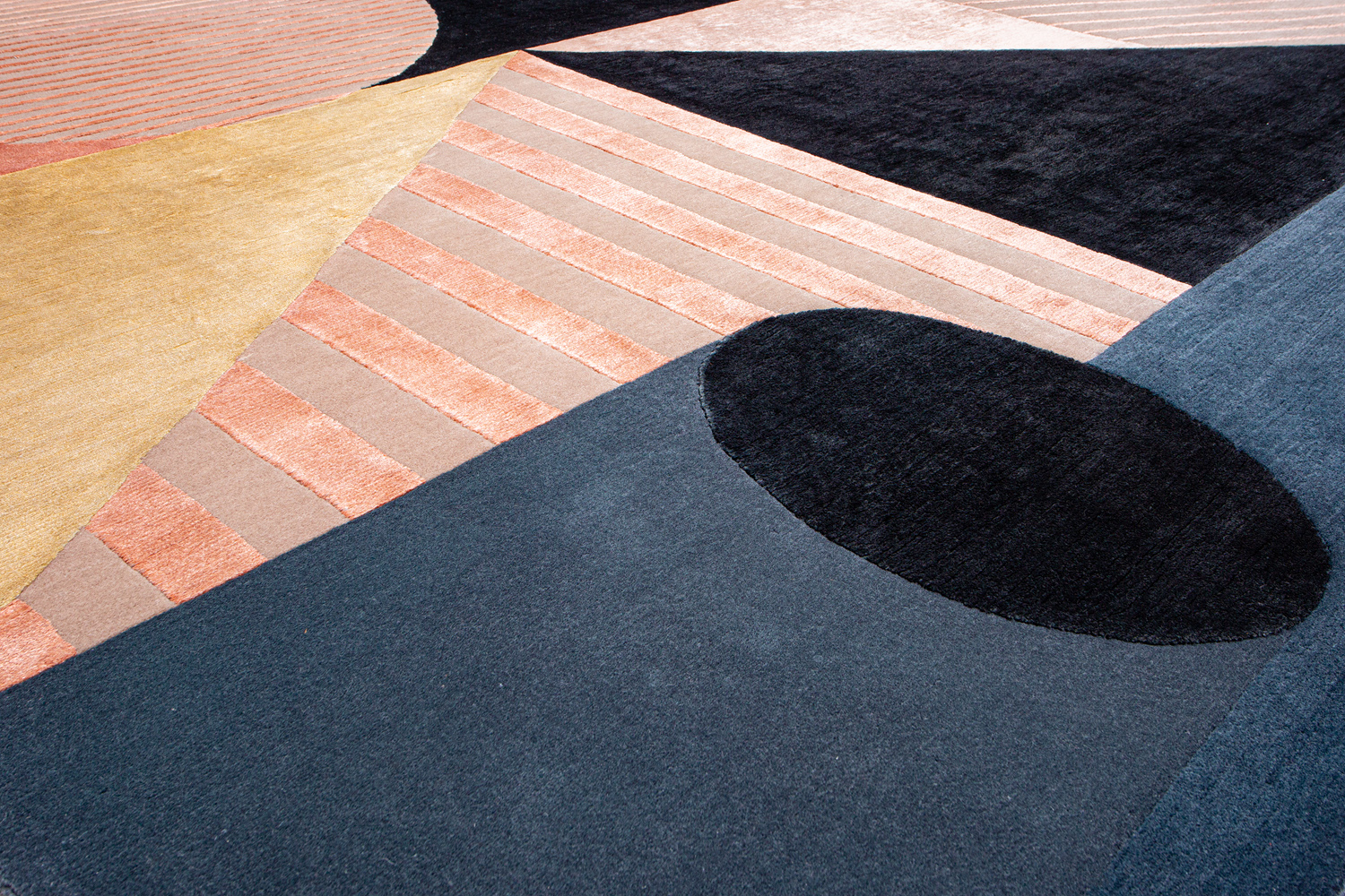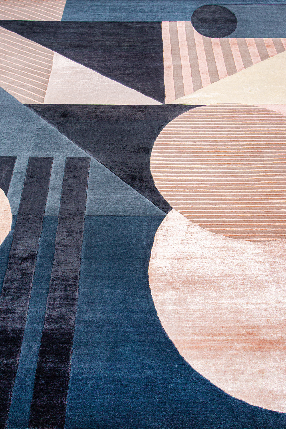 Крупные рисунки в виде линий и фигур на фактурной поверхности ковра превращаются в выразительные композиции. Они акцентируют на себе внимание и добавляют динамики в современный интерьер. Комбинации разных фигур и повторяющийся орнамент задают ритмическую основу пространству, привносят в него оригинальные оптические иллюзии.