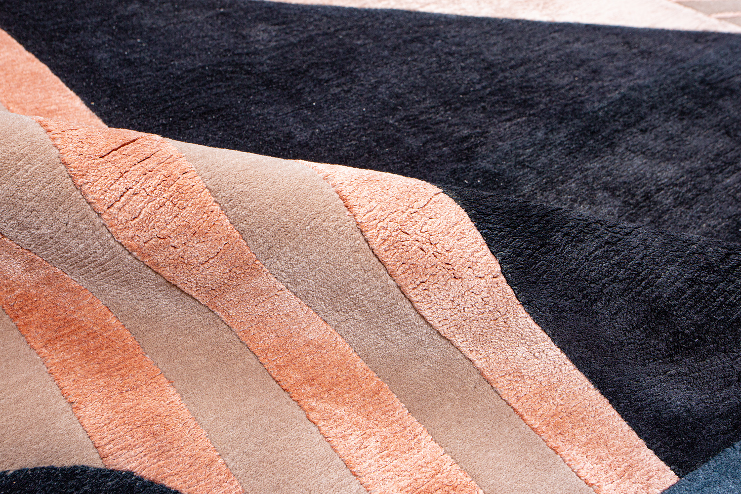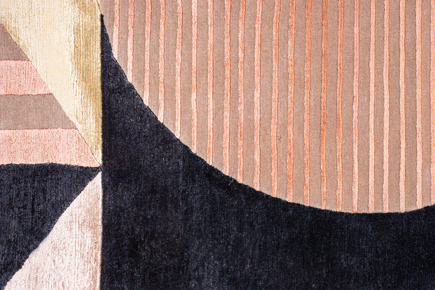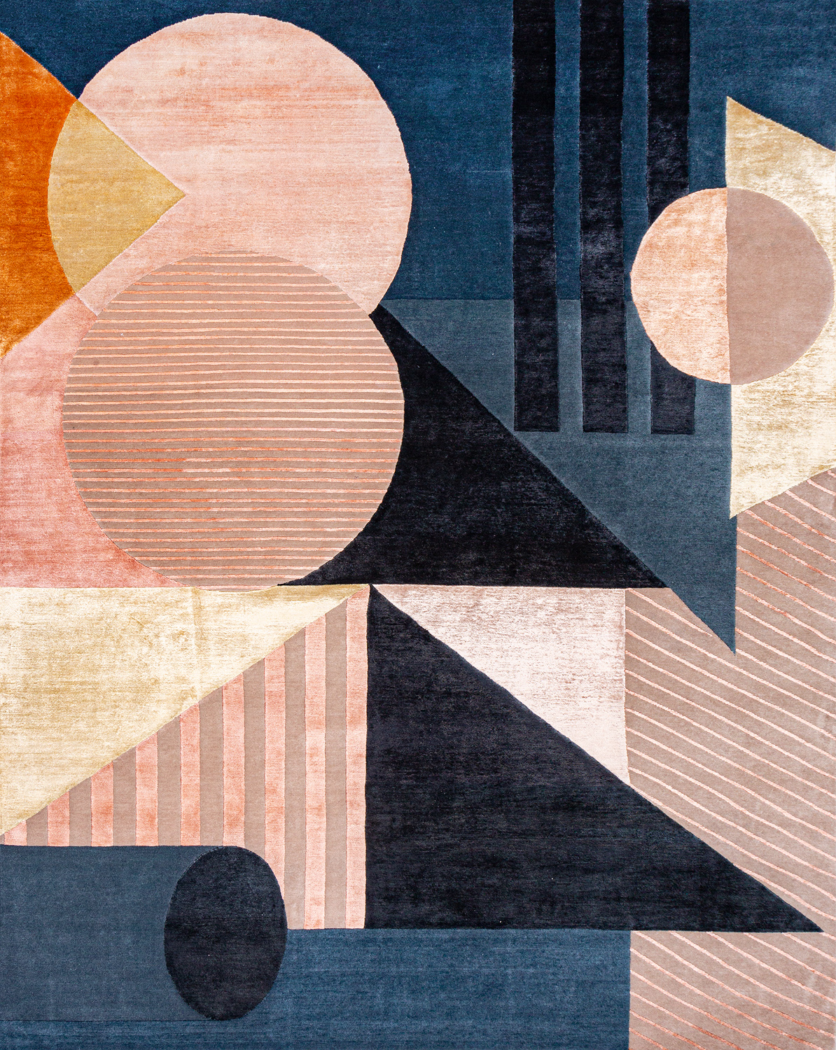 Крупные рисунки в виде линий и фигур на фактурной поверхности ковра превращаются в выразительные композиции. Они акцентируют на себе внимание и добавляют динамики в современный интерьер. Комбинации разных фигур и повторяющийся орнамент задают ритмическую основу пространству, привносят в него оригинальные оптические иллюзии.