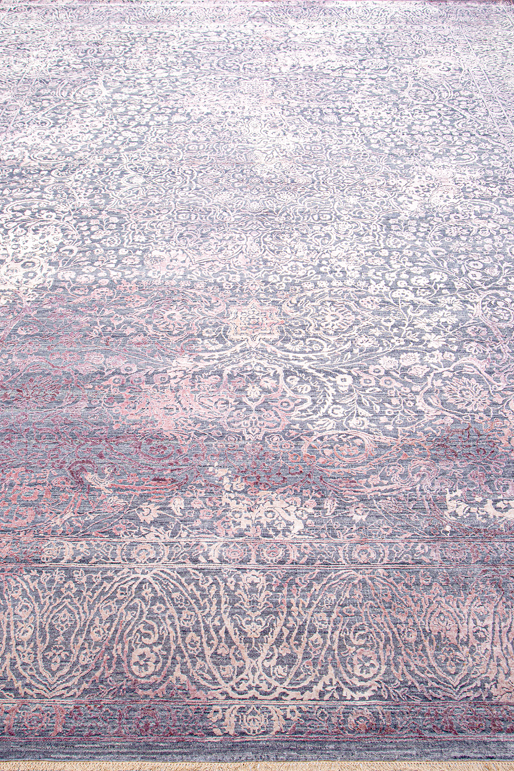 Такой эффект достигается за счет специальной техники плетения, а также обработки, которой подвергают ковры, чтобы они выглядели как антикварные — то есть дорого, элегантно и модно.