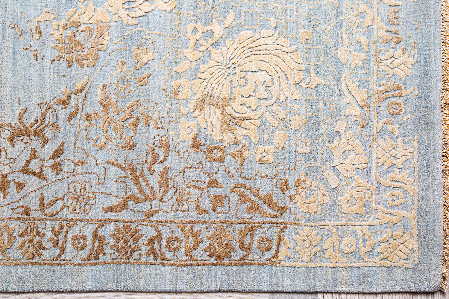 Родина этих ковров Индия. Чтобы создать такое произведение искусства у мастеров уходит от одного года до двух лет. Плотность ковров, в зависимости от размера, составляет от 250 000 до 400 000 узлов на квадратный метр.