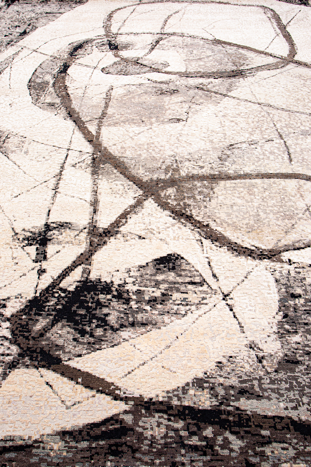 Дизайн ковров напоминает современные полотна художников-абстракционистов и производит столь же яркое и незабываемое впечатление в интерьере. Живописный эффект и необычная фактура зависят от выбора материала: натуральной шерсти, шёлка и от их сочетаний друг с другом. Ковры ткутся вручную в лучших мастерских Индии и Пакистана.