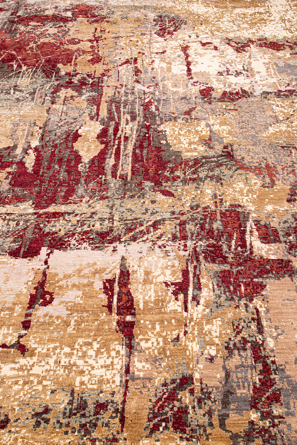 Дизайн ковров напоминает современные полотна художников-абстракционистов и производит столь же яркое и незабываемое впечатление в интерьере. Живописный эффект и необычная фактура зависят от выбора материала: натуральной шерсти, шёлка и от их сочетаний друг с другом. Ковры ткутся вручную в лучших мастерских Индии и Пакистана.