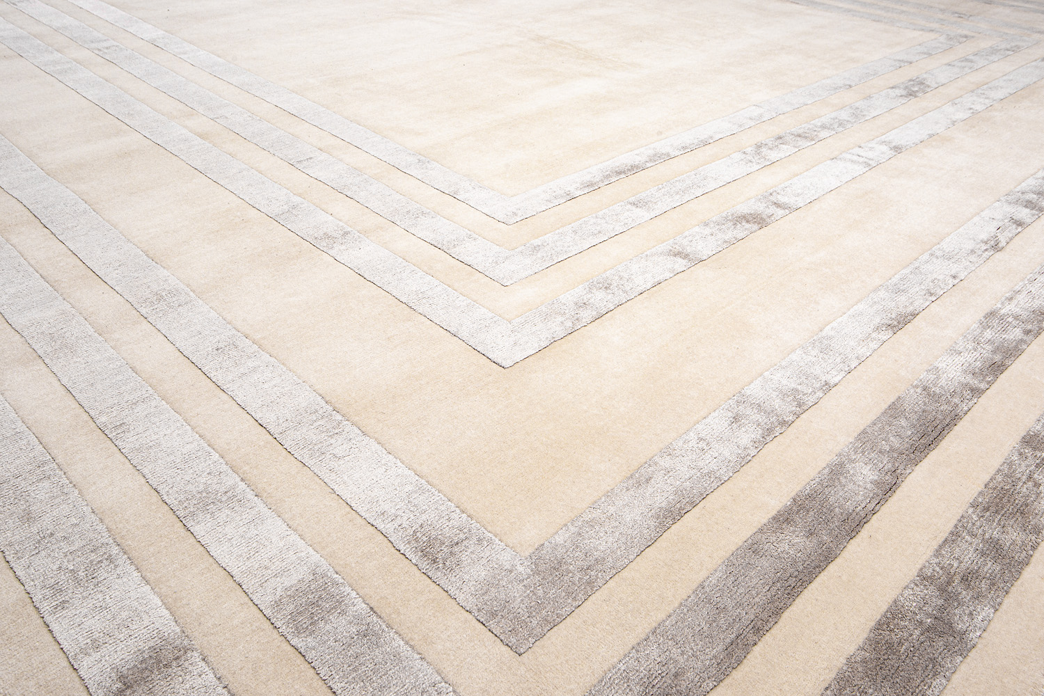 Крупные рисунки в виде линий и фигур на фактурной поверхности ковра превращаются в выразительные композиции. Они акцентируют на себе внимание и добавляют динамики в современный интерьер. Комбинации разных фигур и повторяющийся орнамент задают ритмическую основу пространству, привносят в него оригинальные оптические иллюзии.