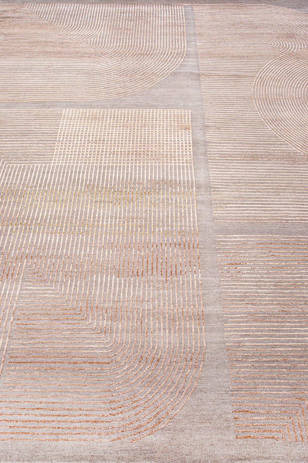 Крупные рисунки в виде линий и фигур на фактурной поверхности ковра превращаются в выразительные композиции. Они акцентируют на себе внимание и добавляют динамики в современный интерьер. Комбинации разных фигур и повторяющийся орнамент задают ритмическую основу пространству, привносят в него оригинальные оптические иллюзии.