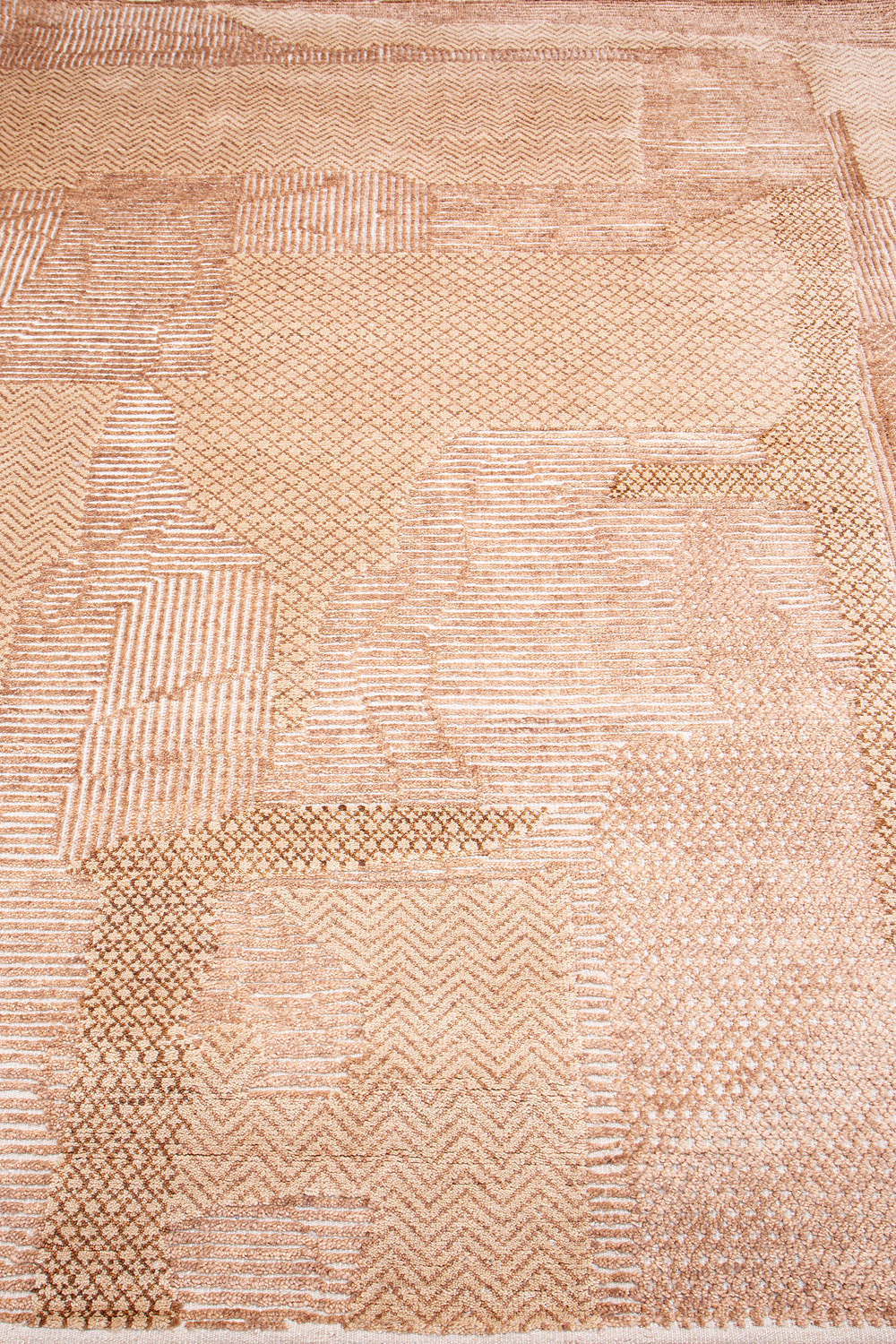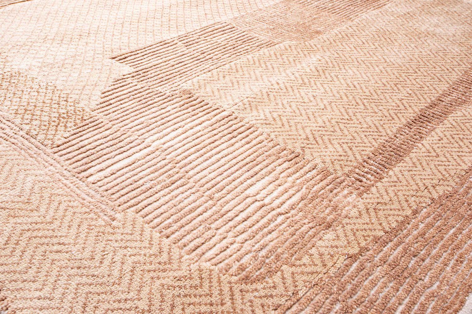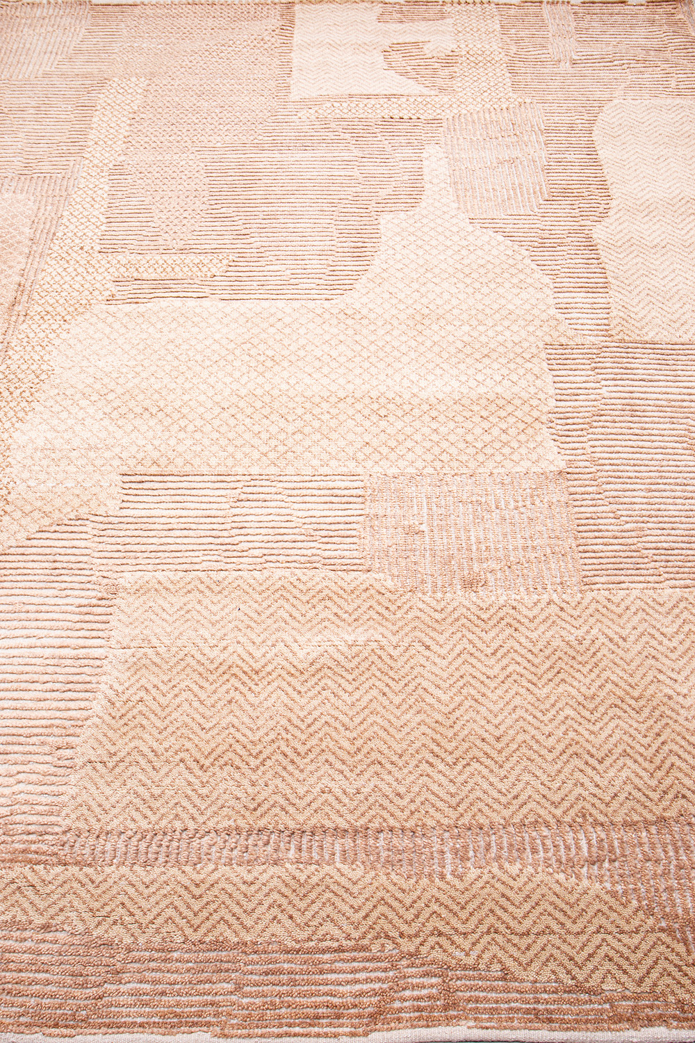 Дизайн ковров напоминает современные полотна художников-абстракционистов и производит столь же яркое и незабываемое впечатление в интерьере. Живописный эффект и необычная фактура зависят от выбора материала: натуральной шерсти, шёлка и от их сочетаний друг с другом. Ковры ткутся вручную в лучших мастерских Индии и Пакистана.