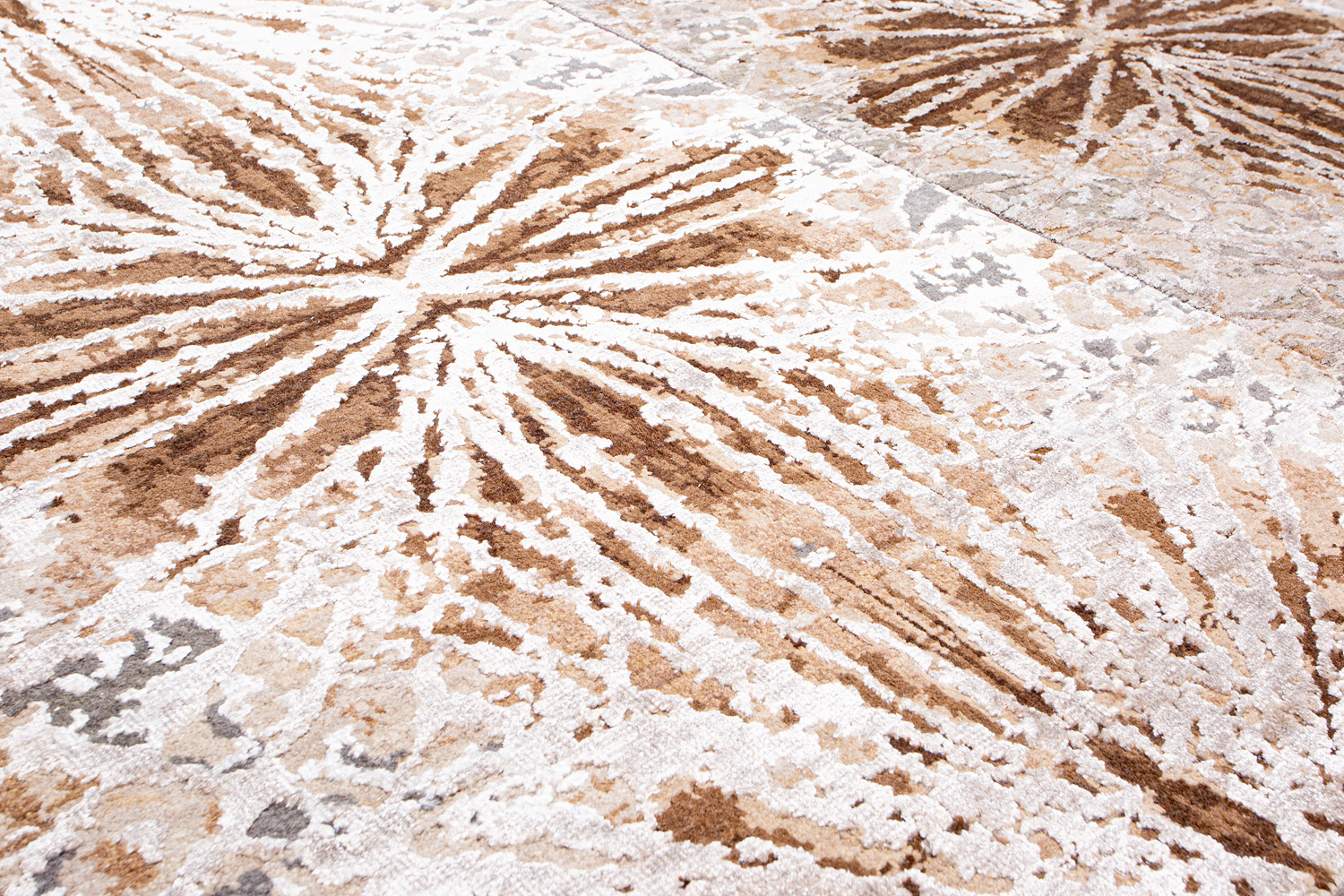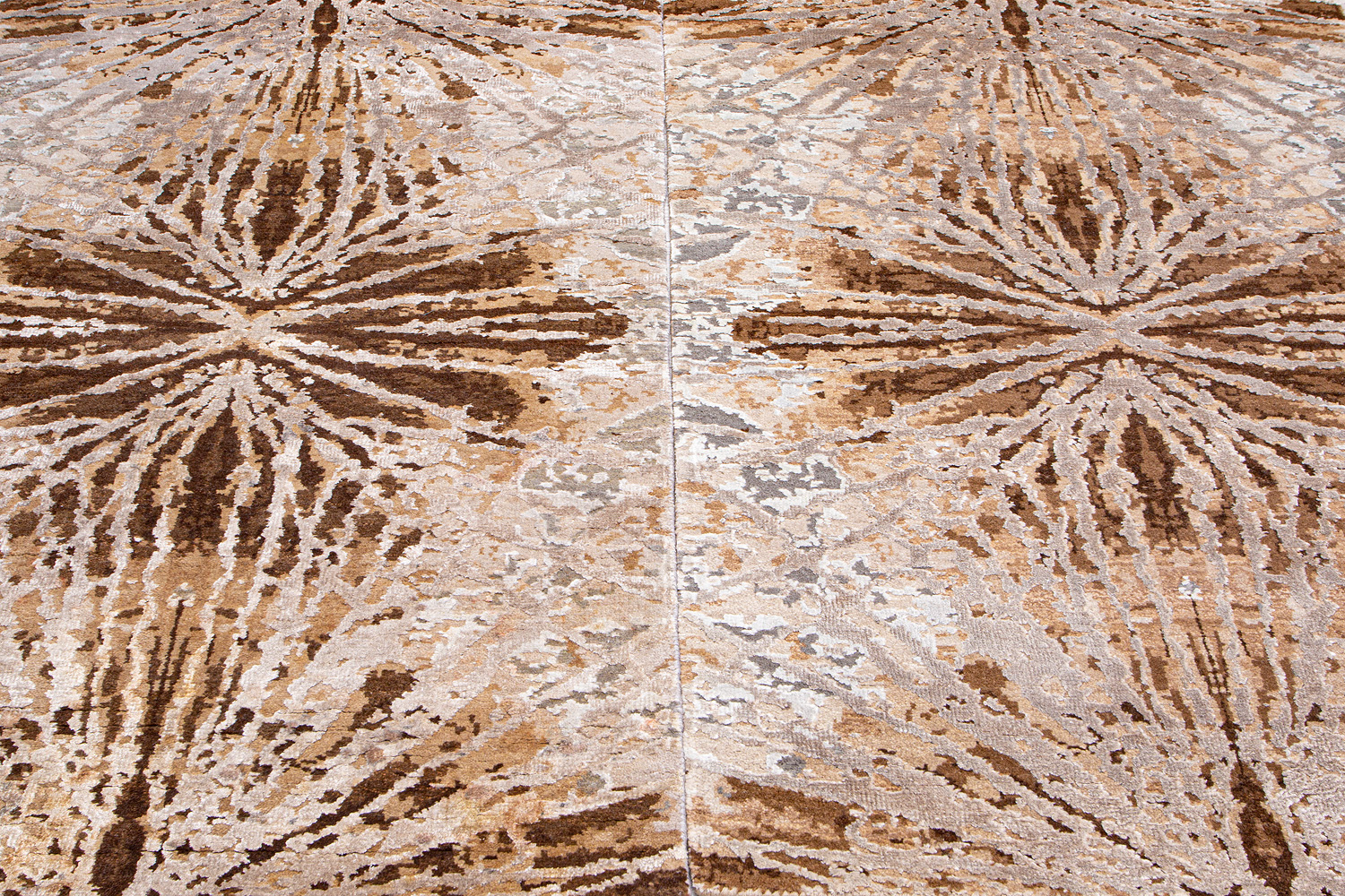 Дизайн ковров напоминает современные полотна художников-абстракционистов и производит столь же яркое и незабываемое впечатление в интерьере. Живописный эффект и необычная фактура зависят от выбора материала: натуральной шерсти, шёлка и от их сочетаний друг с другом. Ковры ткутся вручную в лучших мастерских Индии и Пакистана.