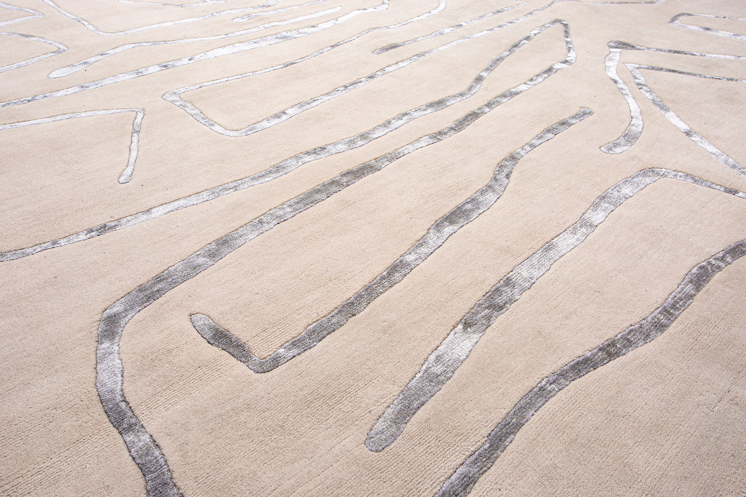 Дизайн ковров напоминает современные полотна художников-абстракционистов и производит столь же яркое и незабываемое впечатление в интерьере. Живописный эффект и необычная фактура зависят от выбора материала: натуральной шерсти, шёлка и от их сочетаний друг с другом. Ковры ткутся вручную в лучших мастерских Индии и Пакистана.