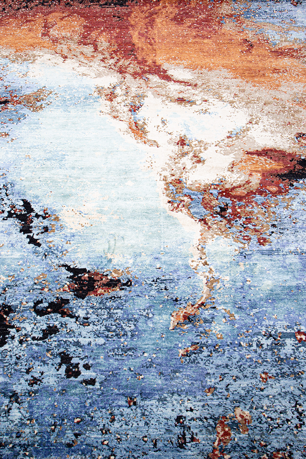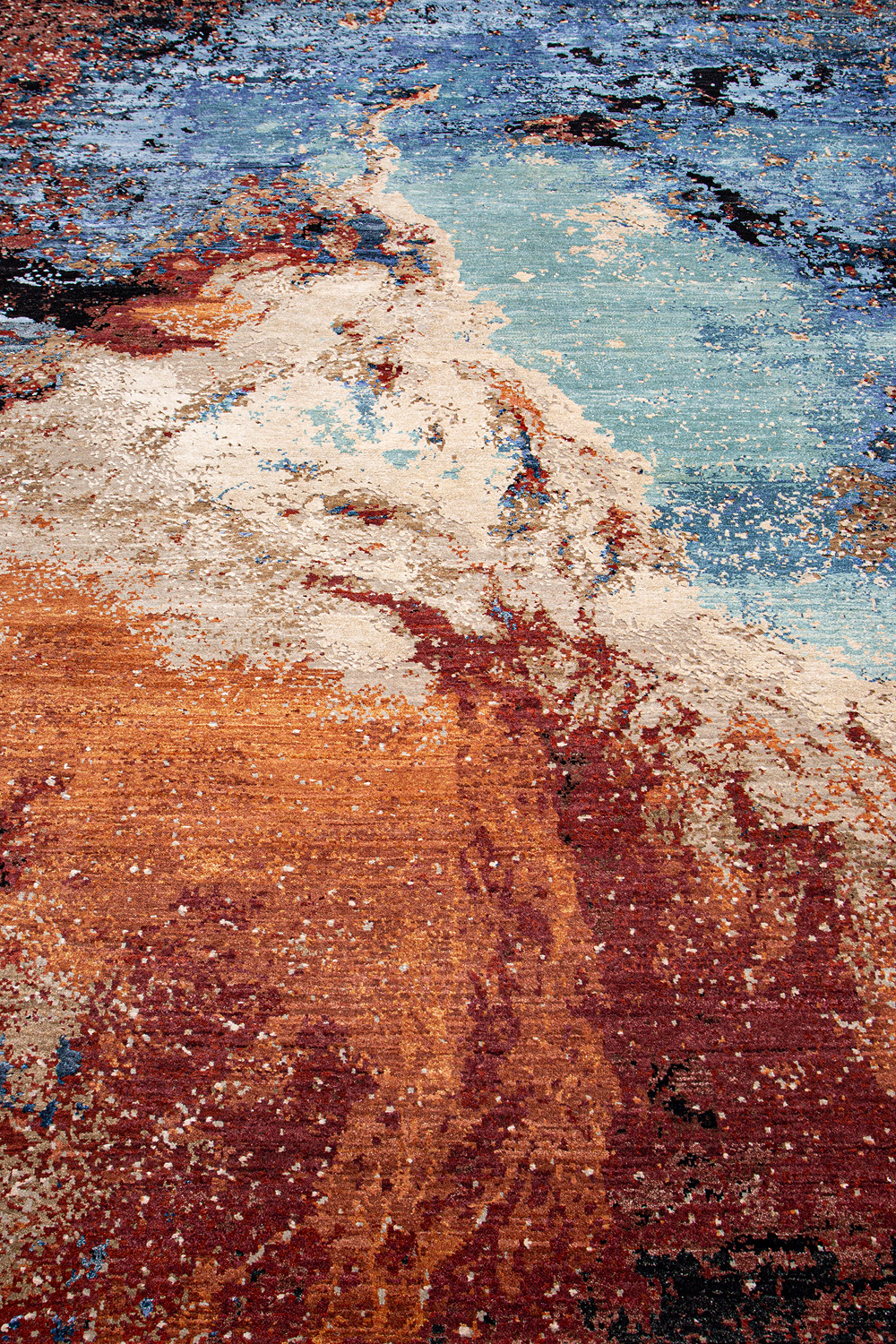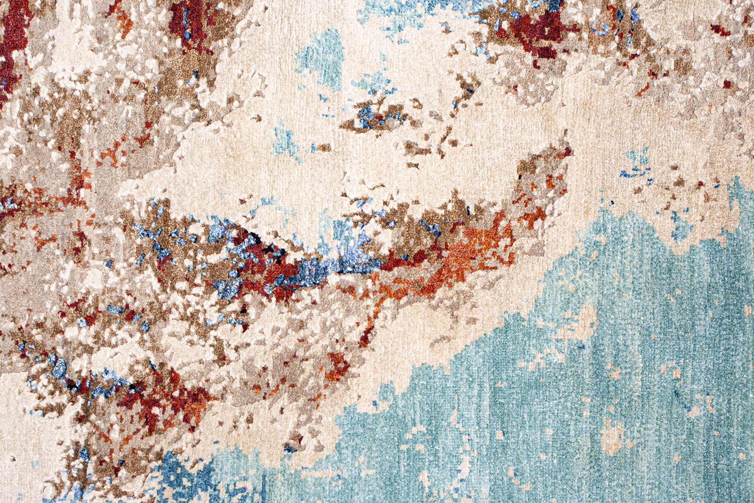 Дизайн ковров напоминает современные полотна художников-абстракционистов и производит столь же яркое и незабываемое впечатление в интерьере. Живописный эффект и необычная фактура зависят от выбора материала: натуральной шерсти, шёлка и от их сочетаний друг с другом. Ковры ткутся вручную в лучших мастерских Индии и Пакистана.