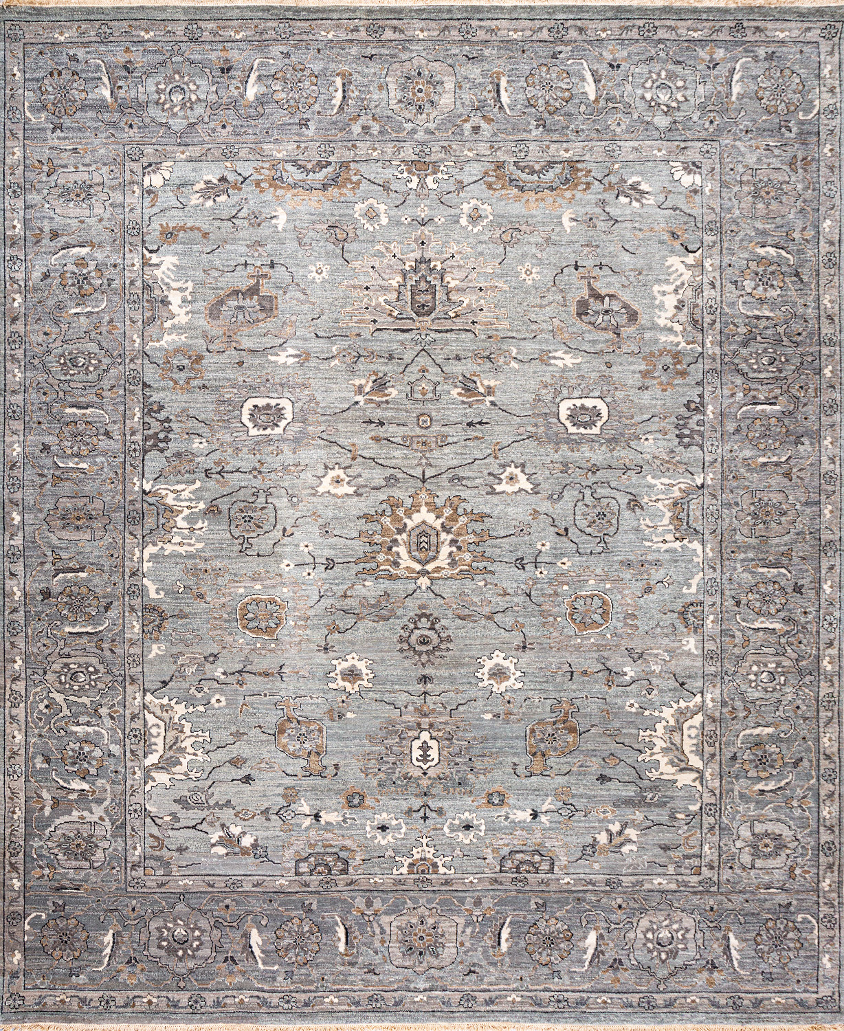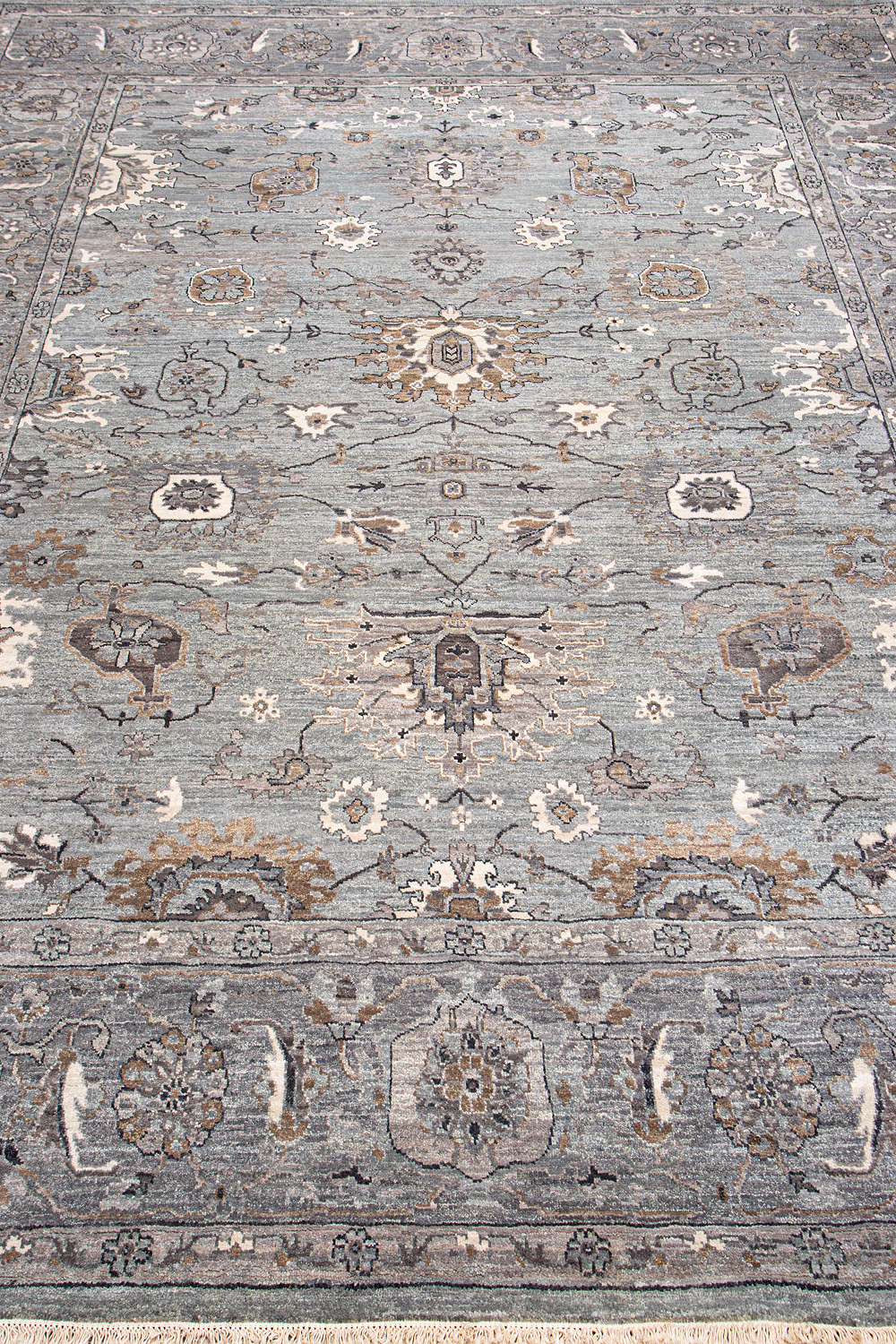 Более пяти веков назад в городе Агра зародилась знаменитая индийская школа ковроткачества, прославившаяся не меньше, чем расположенный здесь же Тадж-Махал. Мощное персидское влияние, помноженное на местный колорит, привело к появлению оригинальных орнаментов с богатыми растительными узорами — причудливым цветам, ветвям и листьям, разбросанным по всему полю ковра.