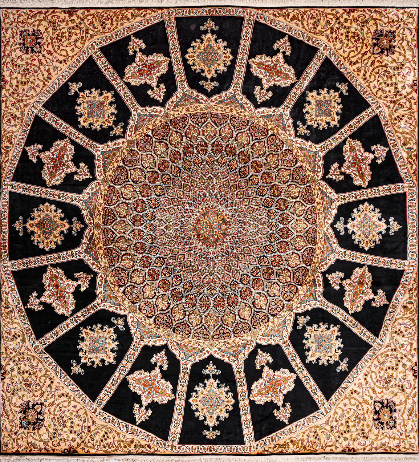 Ковры из коллекции Кашмир ткутся по традиционной технологии из нежнейшего кашмирского шелка. Лучшие произведения индийских мастеров отличает высокая узелковая плотность, прочность и яркость цветов.