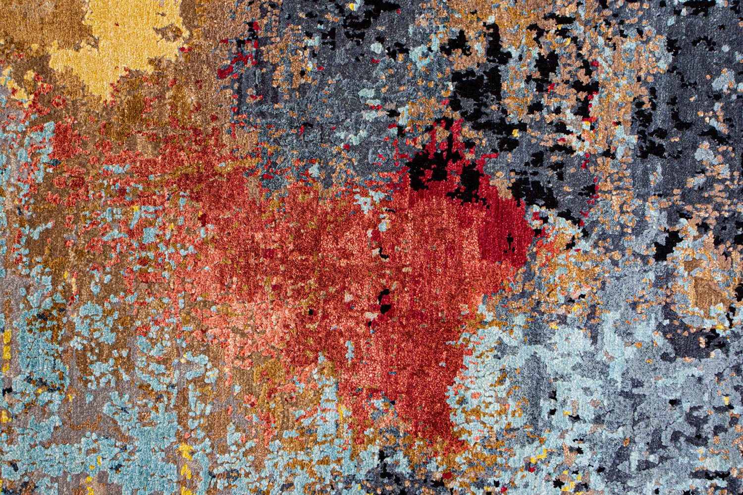 Дизайн ковров напоминает современные полотна художников-абстракционистов и производит столь же яркое и незабываемое впечатление в интерьере. Живописный эффект и необычная фактура зависят от выбора материала: натуральной шерсти, шёлка и от их сочетаний друг с другом. Ковры ткутся вручную в лучших мастерских Индии и Пакистана.
