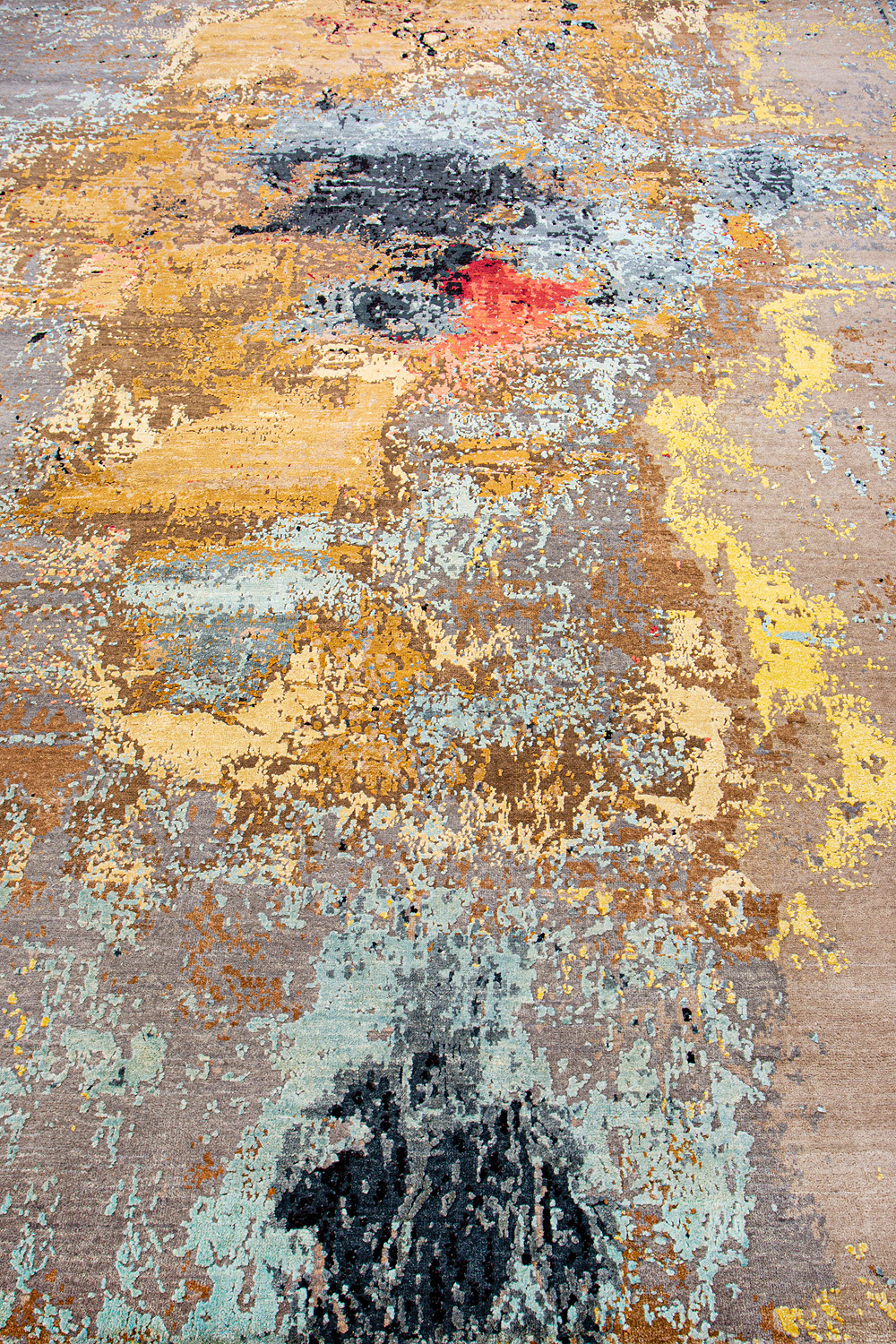 Дизайн ковров напоминает современные полотна художников-абстракционистов и производит столь же яркое и незабываемое впечатление в интерьере. Живописный эффект и необычная фактура зависят от выбора материала: натуральной шерсти, шёлка и от их сочетаний друг с другом. Ковры ткутся вручную в лучших мастерских Индии и Пакистана.