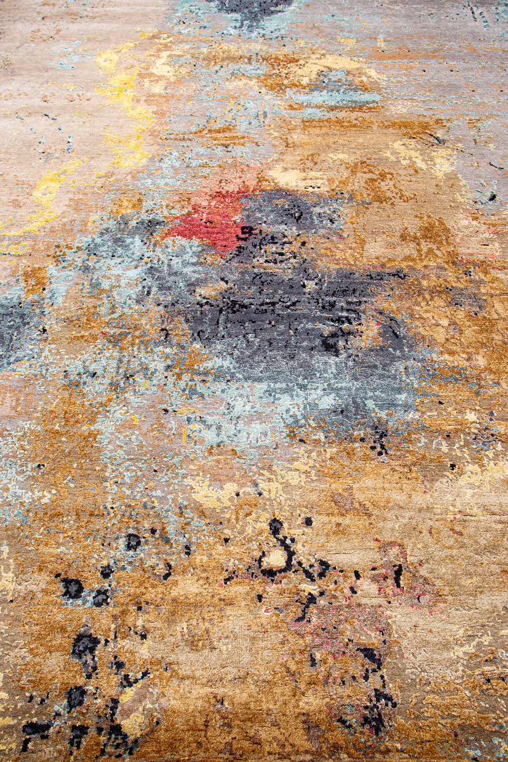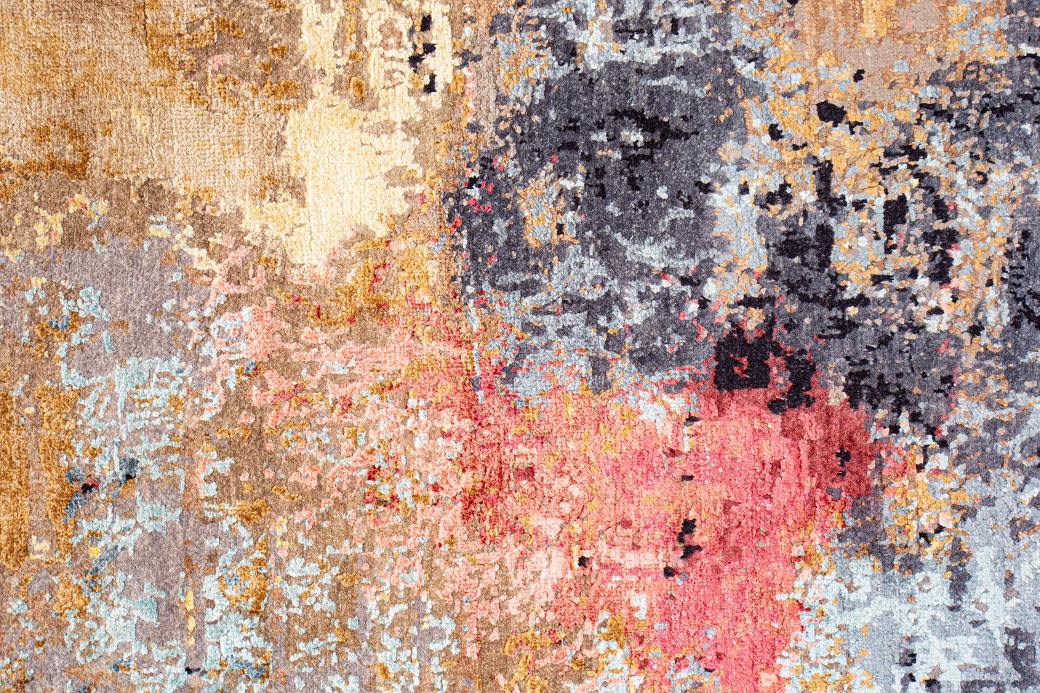 Дизайн ковров напоминает современные полотна художников-абстракционистов и производит столь же яркое и незабываемое впечатление в интерьере. Живописный эффект и необычная фактура зависят от выбора материала: натуральной шерсти, шёлка и от их сочетаний друг с другом. Ковры ткутся вручную в лучших мастерских Индии и Пакистана.