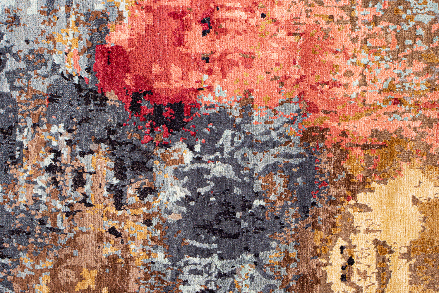 Дизайн ковров напоминает современные полотна художников-абстракционистов и производит столь же яркое и незабываемое впечатление в интерьере. Живописный эффект и необычная фактура зависят от выбора материала: натуральной шерсти, шёлка и от их сочетаний друг с другом. Ковры ткутся вручную в лучших мастерских Индии и Пакистана.