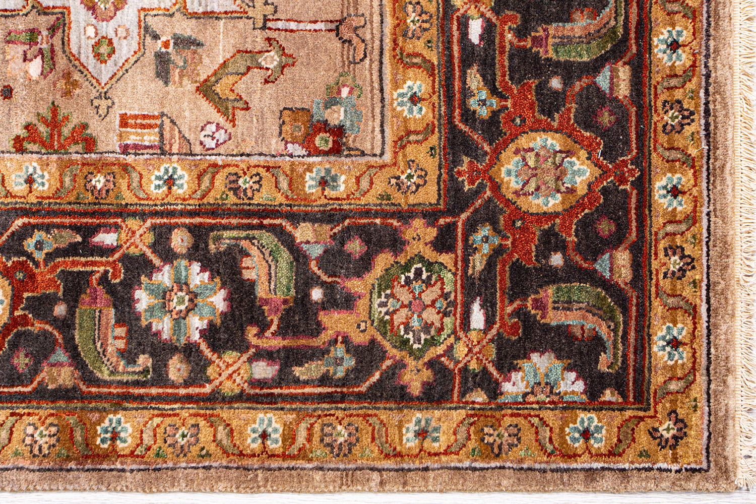 Более пяти веков назад в городе Агра зародилась знаменитая индийская школа ковроткачества, прославившаяся не меньше, чем расположенный здесь же Тадж-Махал. Мощное персидское влияние, помноженное на местный колорит, привело к появлению оригинальных орнаментов с богатыми растительными узорами — причудливым цветам, ветвям и листьям, разбросанным по всему полю ковра.