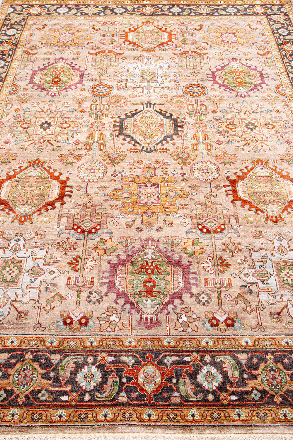 Каждый ковер в этой коллекции соткан вручную из шерсти и арт шёлка опытными индийскими мастерами.