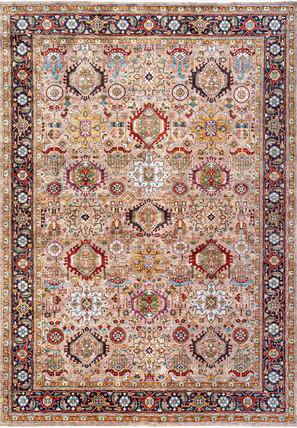 Более пяти веков назад в городе Агра зародилась знаменитая индийская школа ковроткачества, прославившаяся не меньше, чем расположенный здесь же Тадж-Махал. Мощное персидское влияние, помноженное на местный колорит, привело к появлению оригинальных орнаментов с богатыми растительными узорами — причудливым цветам, ветвям и листьям, разбросанным по всему полю ковра.