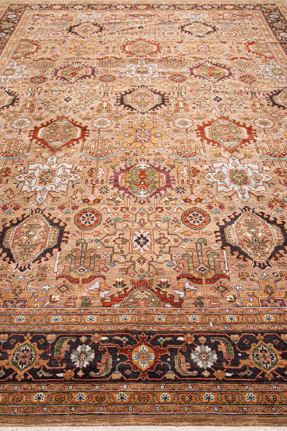 Каждый ковер в этой коллекции соткан вручную из шерсти и арт шёлка опытными индийскими мастерами.