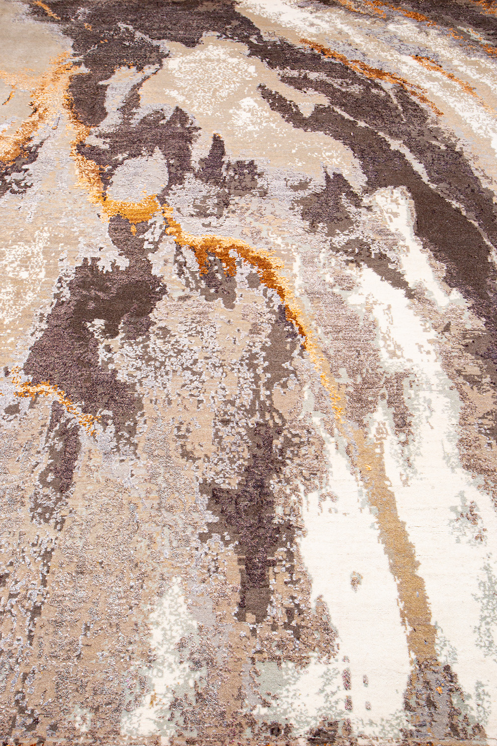 Дизайн ковров напоминает современные полотна художников-абстракционистов и производит столь же яркое и незабываемое впечатление в интерьере. Живописный эффект и необычная фактура зависят от выбора материала: натуральной шерсти, шёлка и от их сочетаний друг с другом. Ковры ткутся вручную в лучших мастерских Индии и Пакистана.