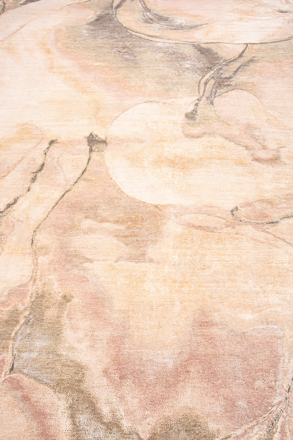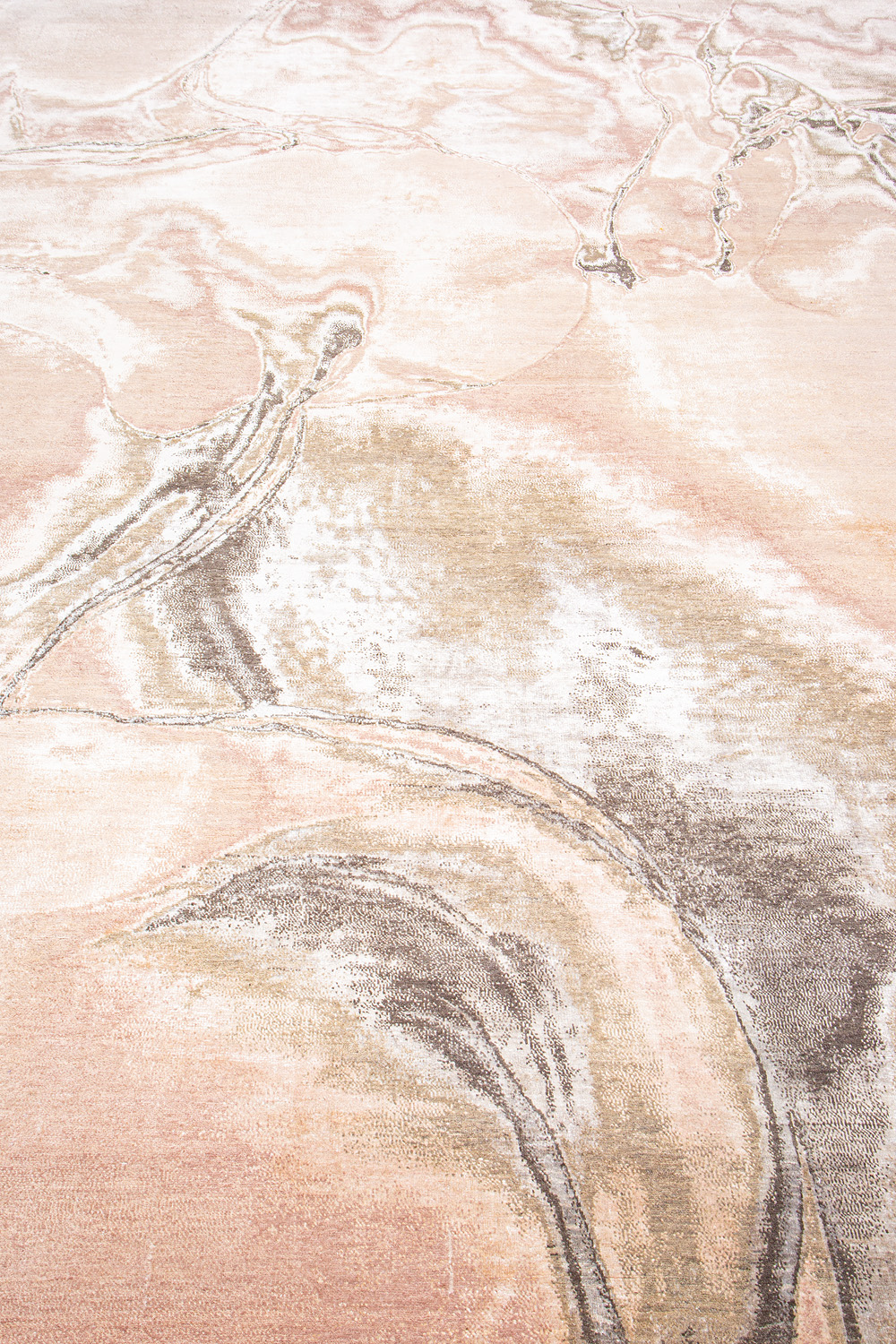 Дизайн ковров напоминает современные полотна художников-абстракционистов и производит столь же яркое и незабываемое впечатление в интерьере. Живописный эффект и необычная фактура зависят от выбора материала: натуральной шерсти, шёлка и от их сочетаний друг с другом. Ковры ткутся вручную в лучших мастерских Индии и Пакистана.