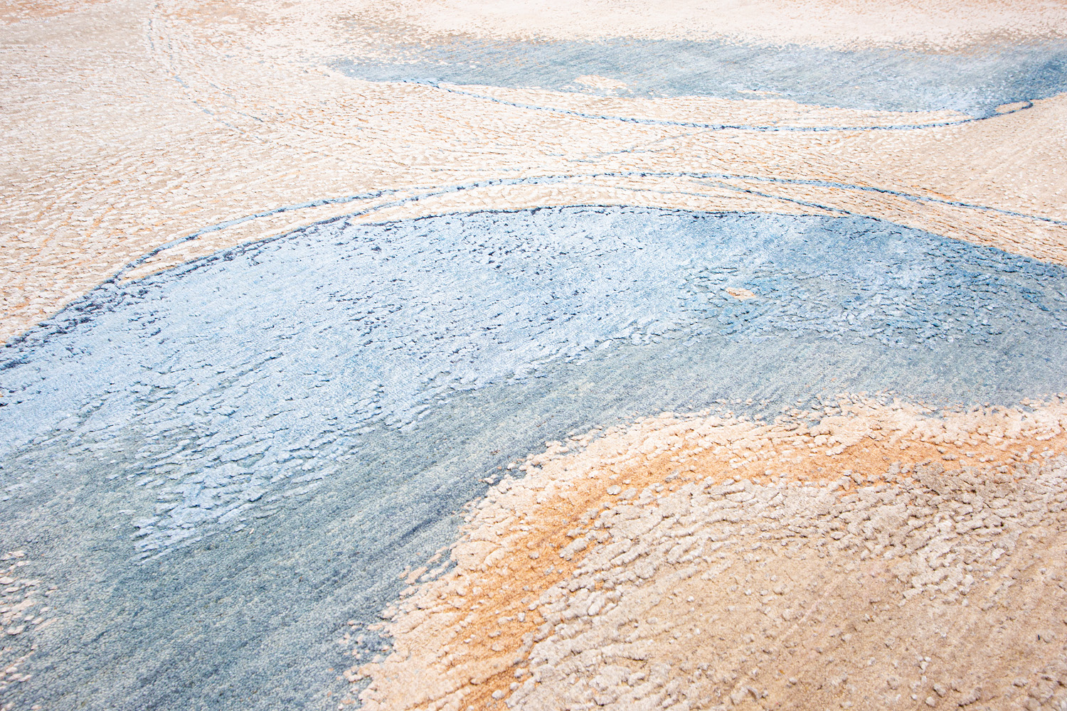 Дизайн ковров напоминает современные полотна художников-абстракционистов и производит столь же яркое и незабываемое впечатление в интерьере. Живописный эффект и необычная фактура зависят от выбора материала: натуральной шерсти, шёлка и от их сочетаний друг с другом. Ковры ткутся вручную в лучших мастерских Индии и Пакистана.