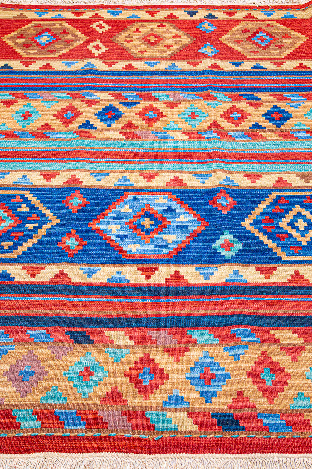 Узор ковров из коллекции Килим создаётся взаимодействием нитей утока и нитей основы, благодаря чему получается геометрический узор.