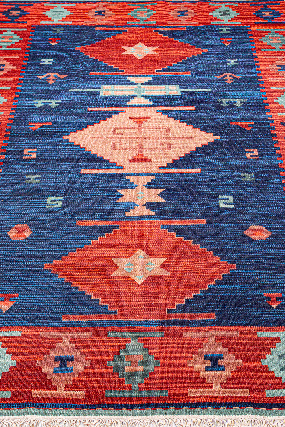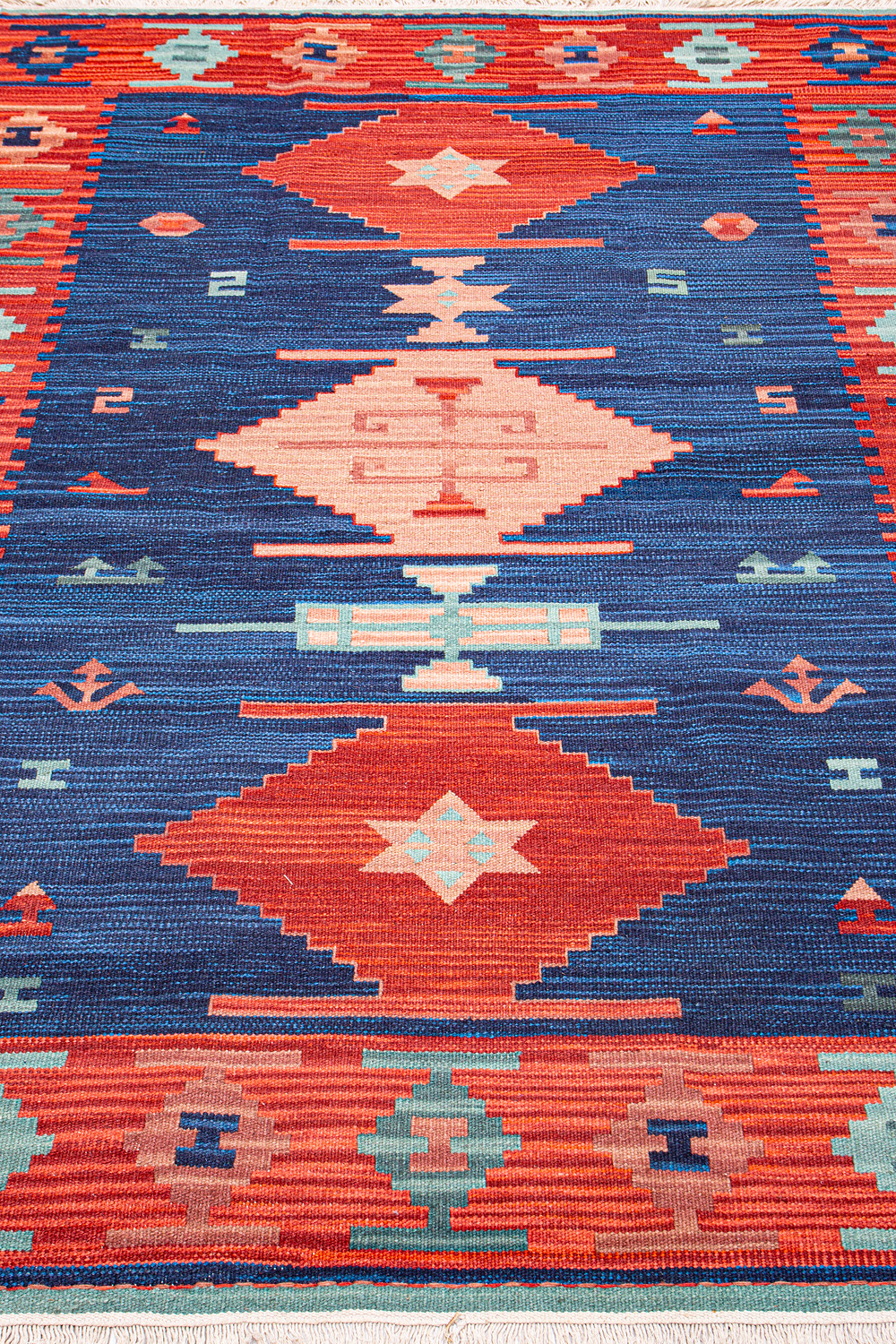 Килим — безворсовый двусторонний ковер, в его составе — высококачественная шерсть, а в дизайне — скандинавские мотивы.