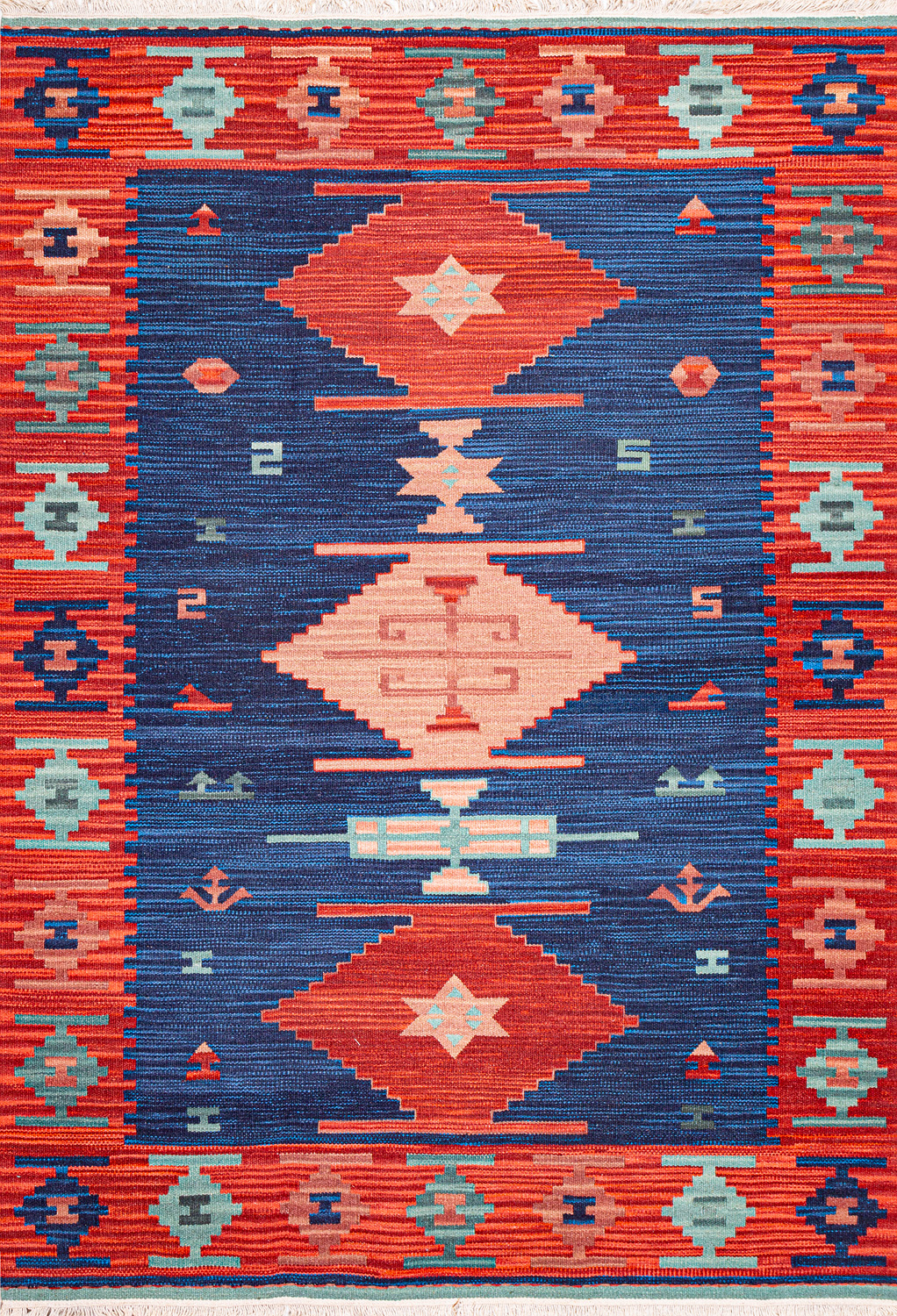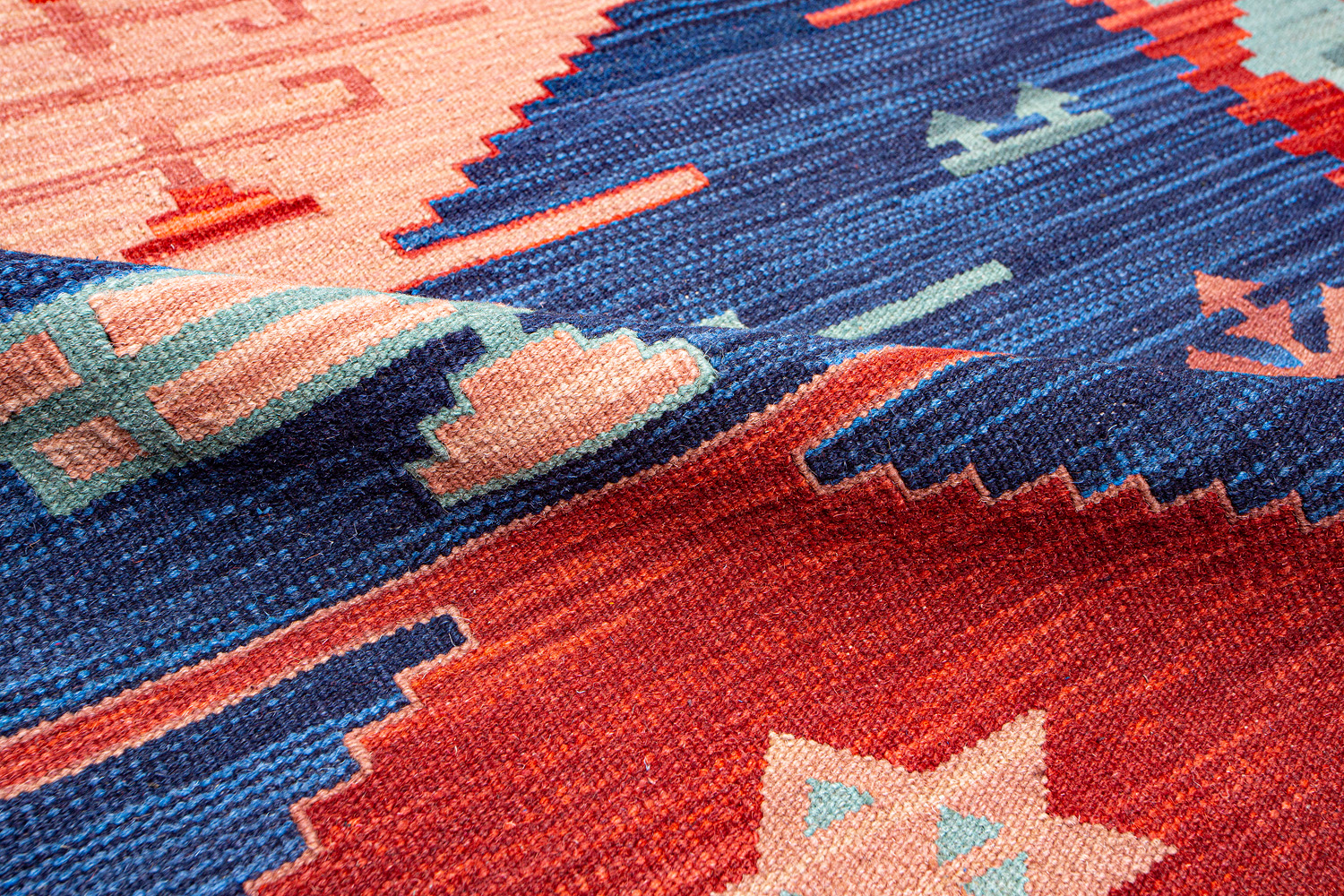 Узор ковров из коллекции Килим создаётся взаимодействием нитей утока и нитей основы, благодаря чему получается геометрический узор.