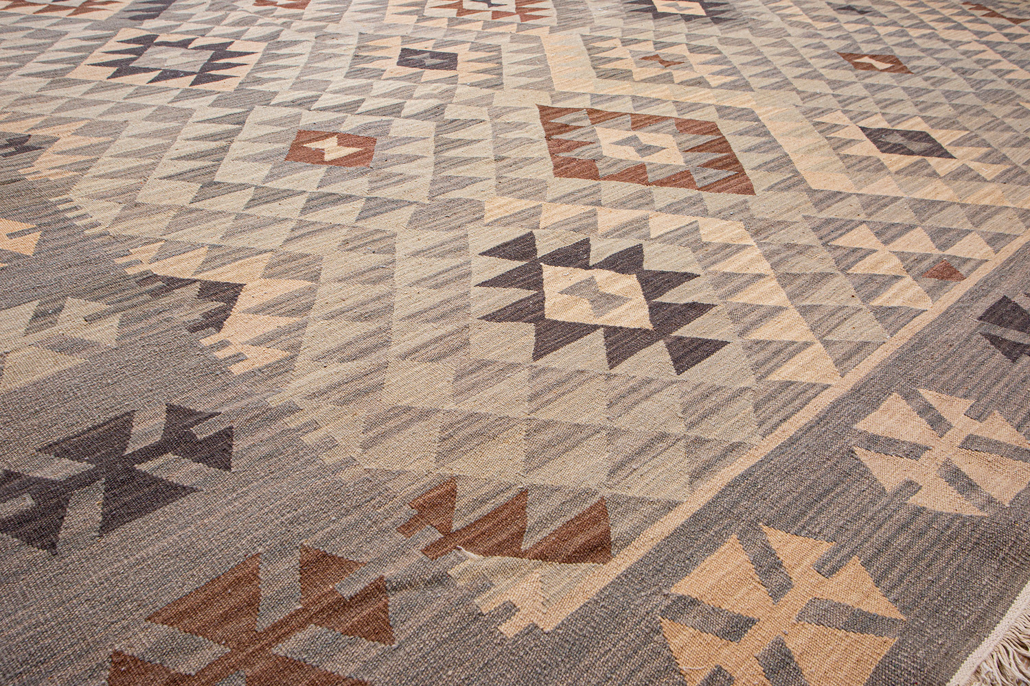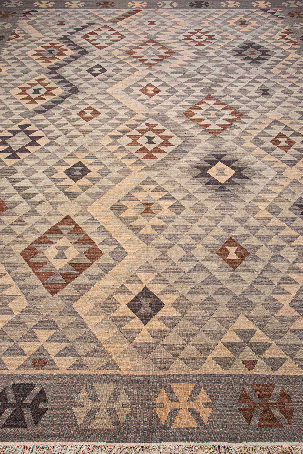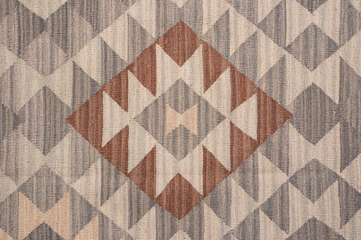 Узор ковров из коллекции Килим создаётся взаимодействием нитей утока и нитей основы, благодаря чему получается геометрический узор.