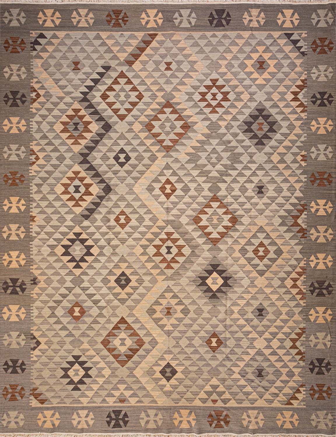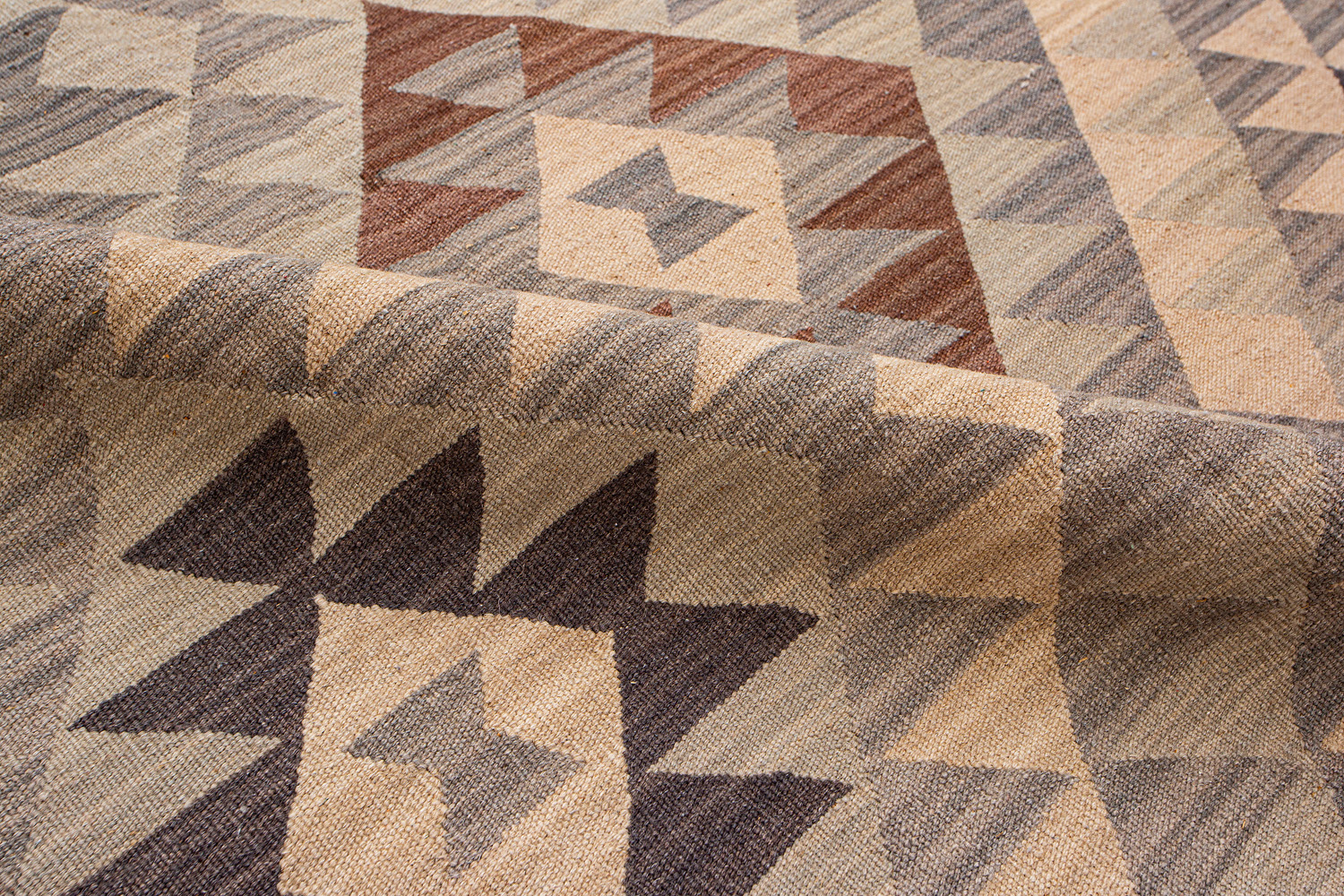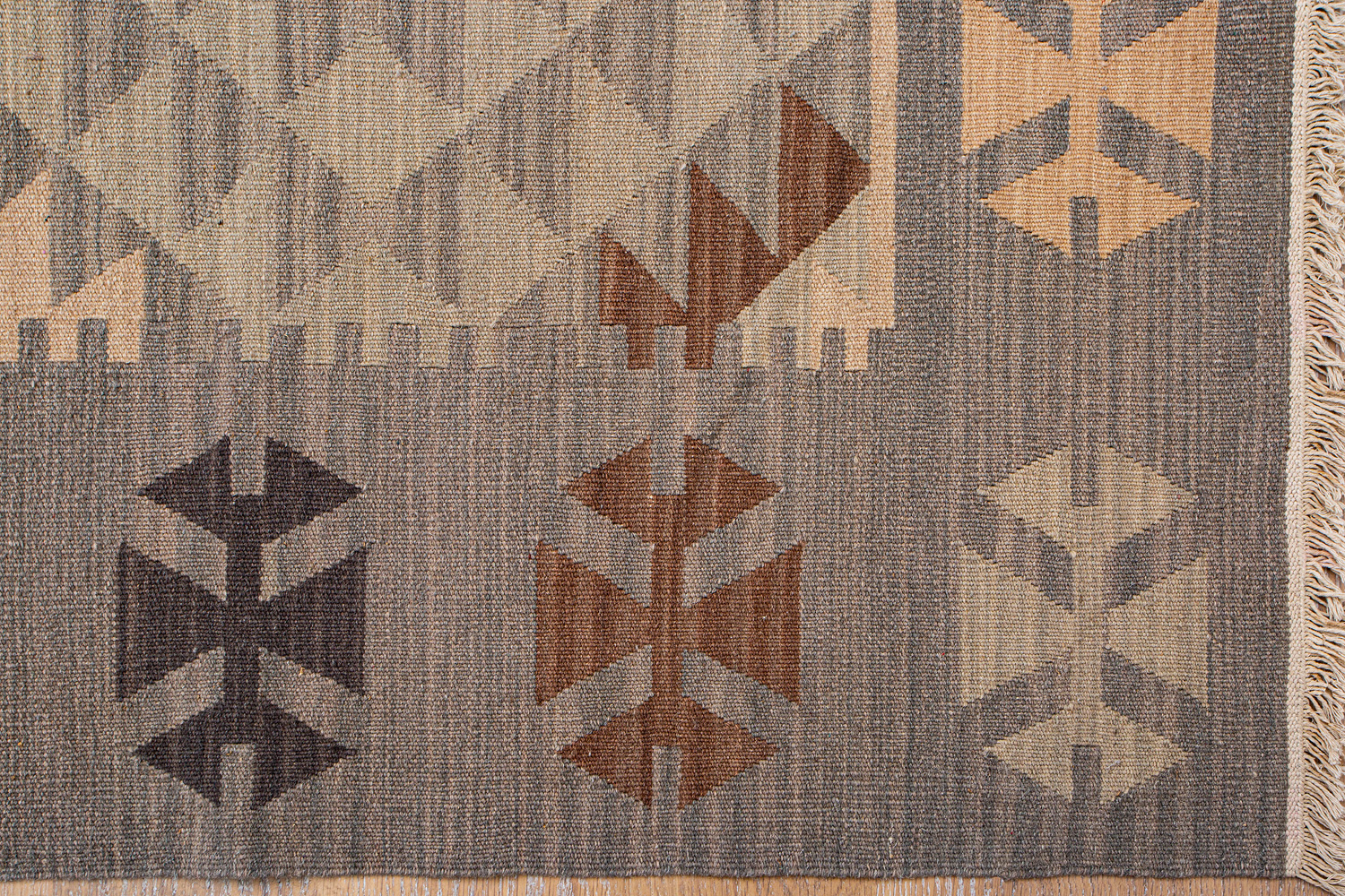 Узор ковров из коллекции Килим создаётся взаимодействием нитей утока и нитей основы, благодаря чему получается геометрический узор.