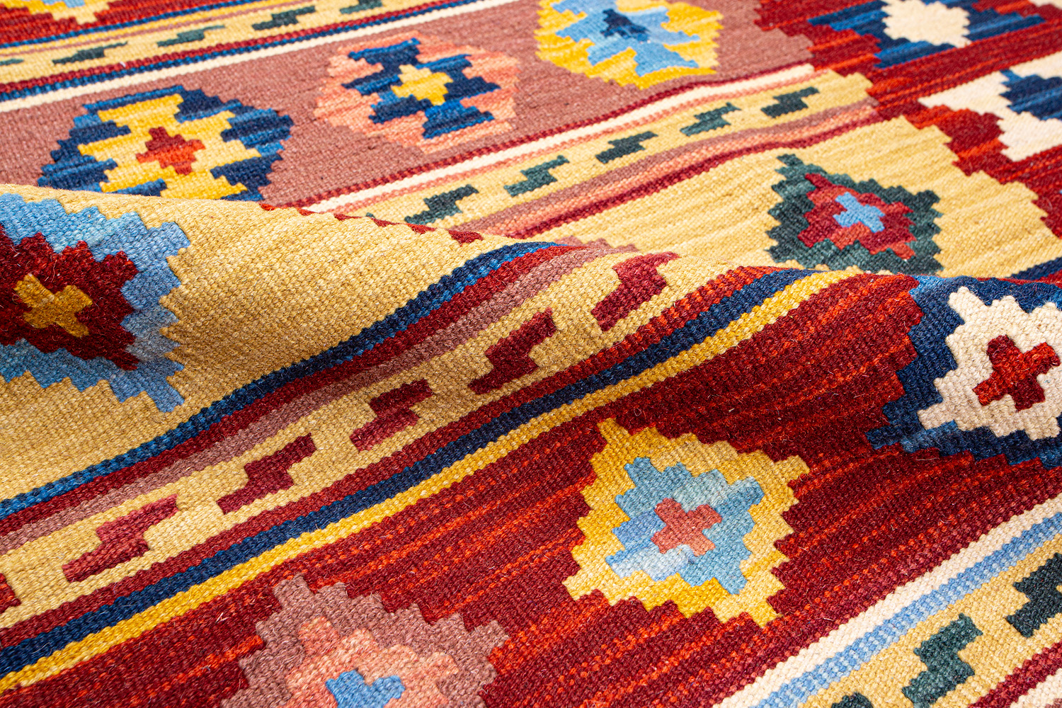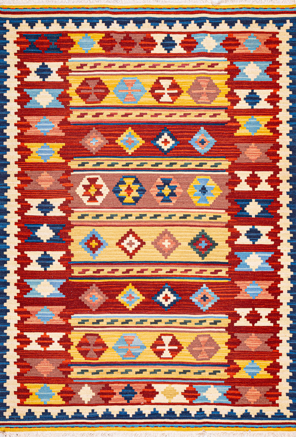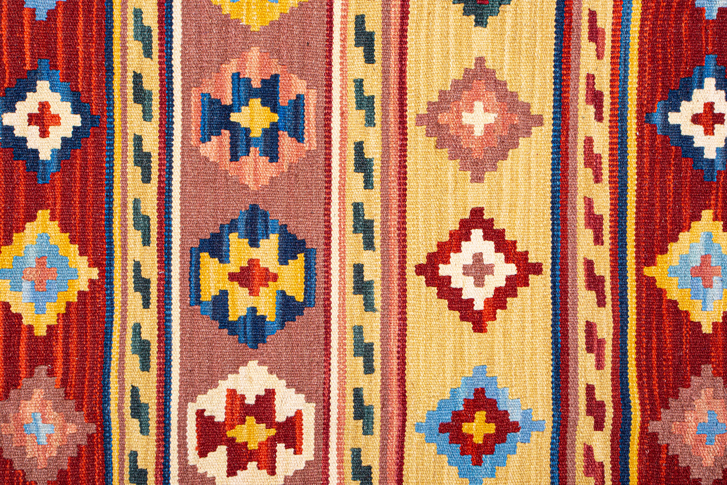 Узор ковров из коллекции Килим создаётся взаимодействием нитей утока и нитей основы, благодаря чему получается геометрический узор.