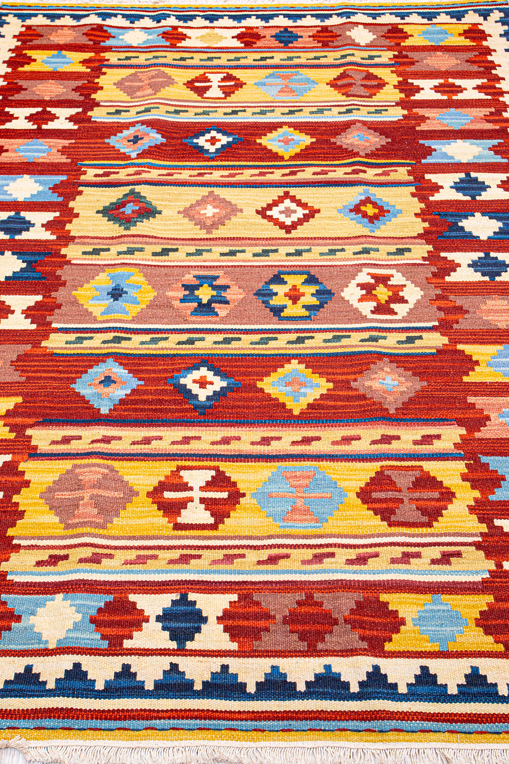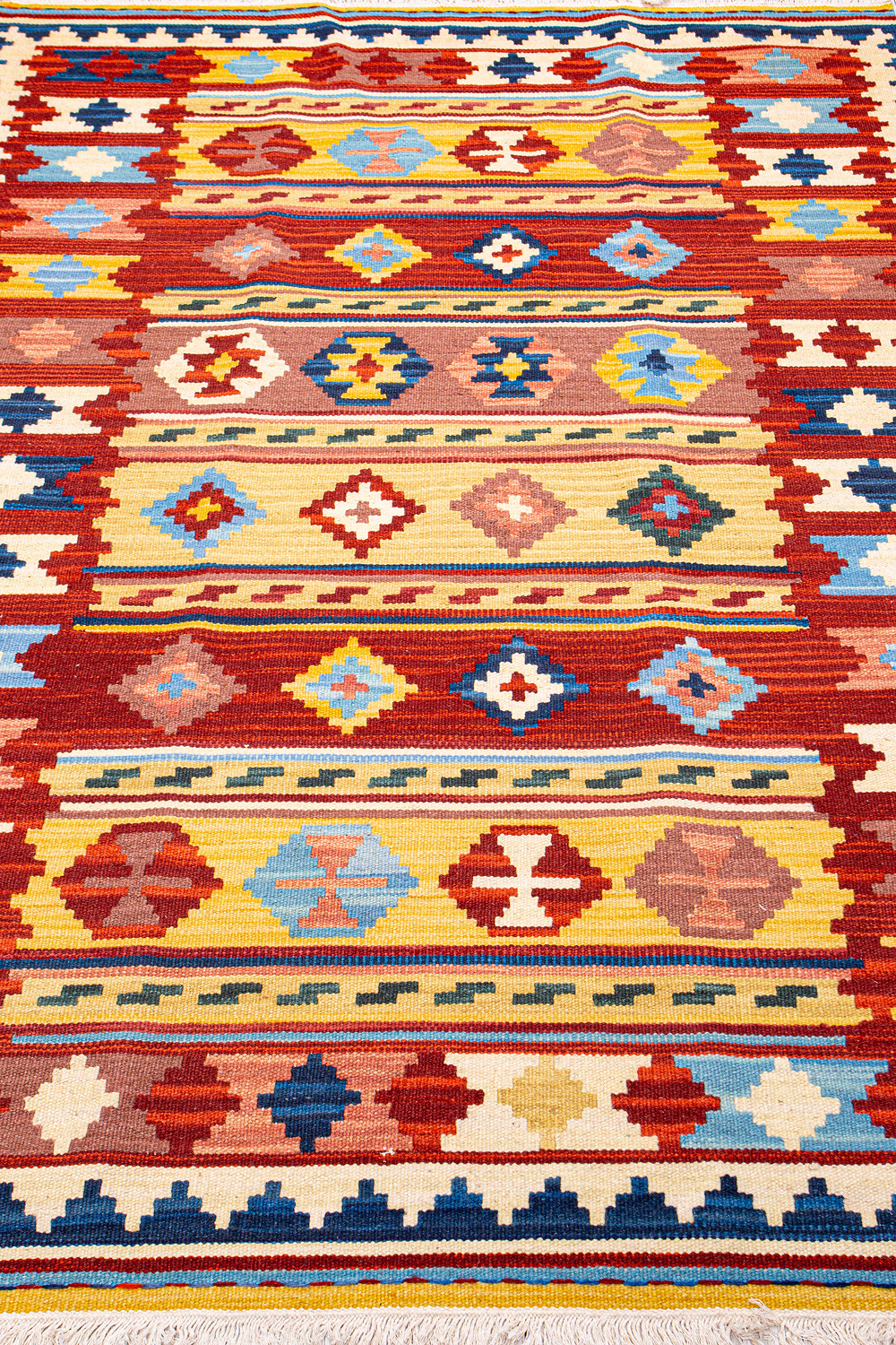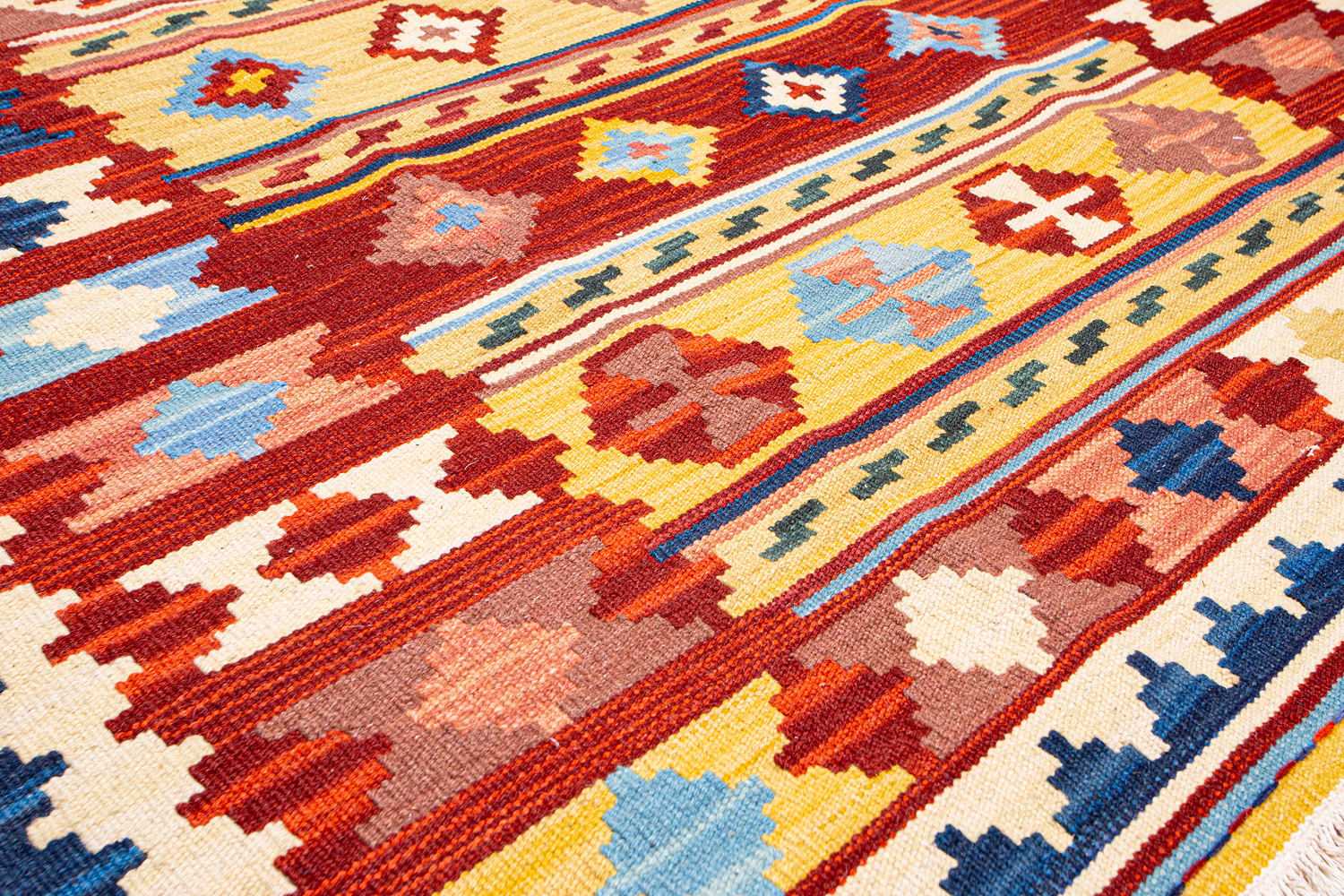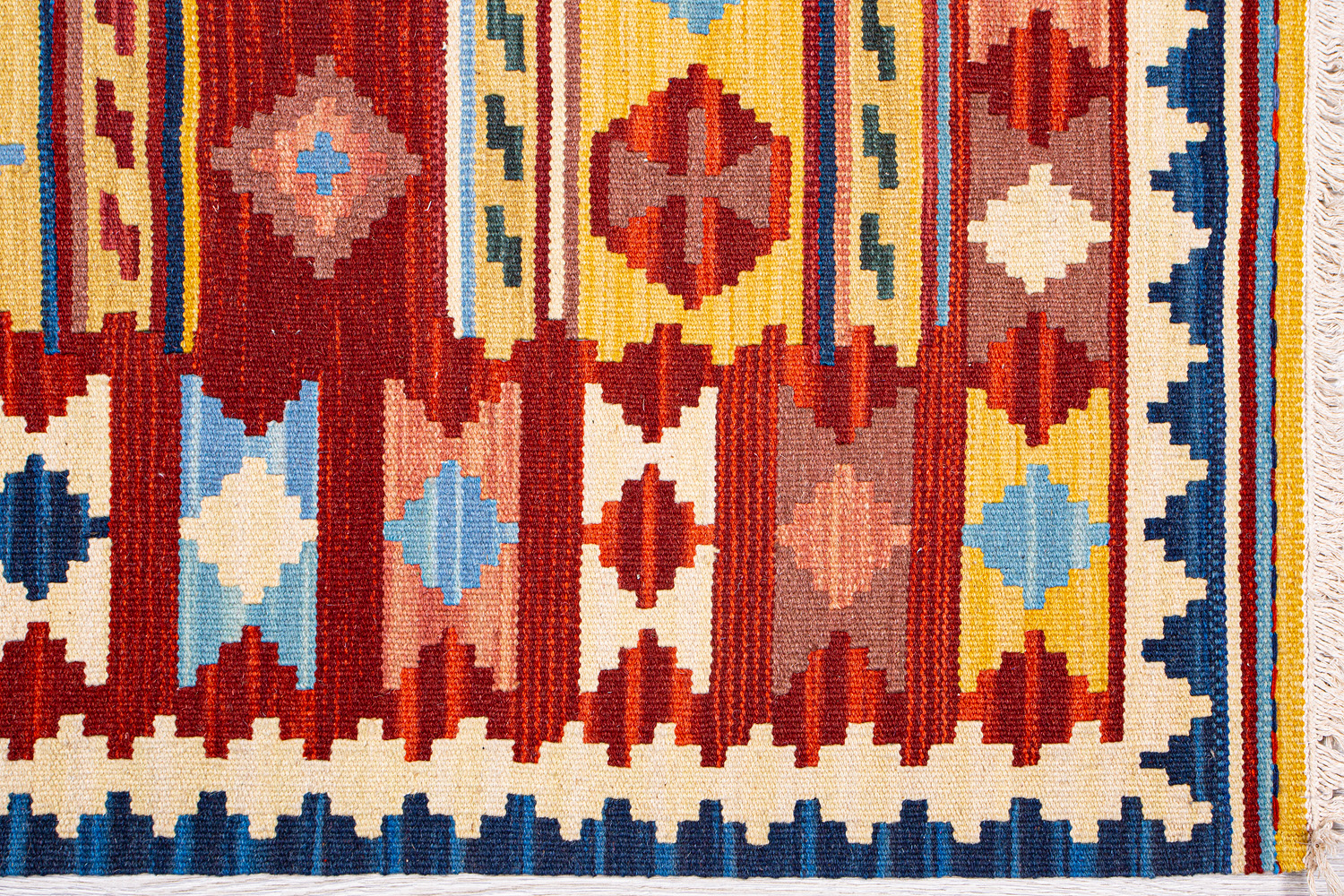 Узор ковров из коллекции Килим создаётся взаимодействием нитей утока и нитей основы, благодаря чему получается геометрический узор.