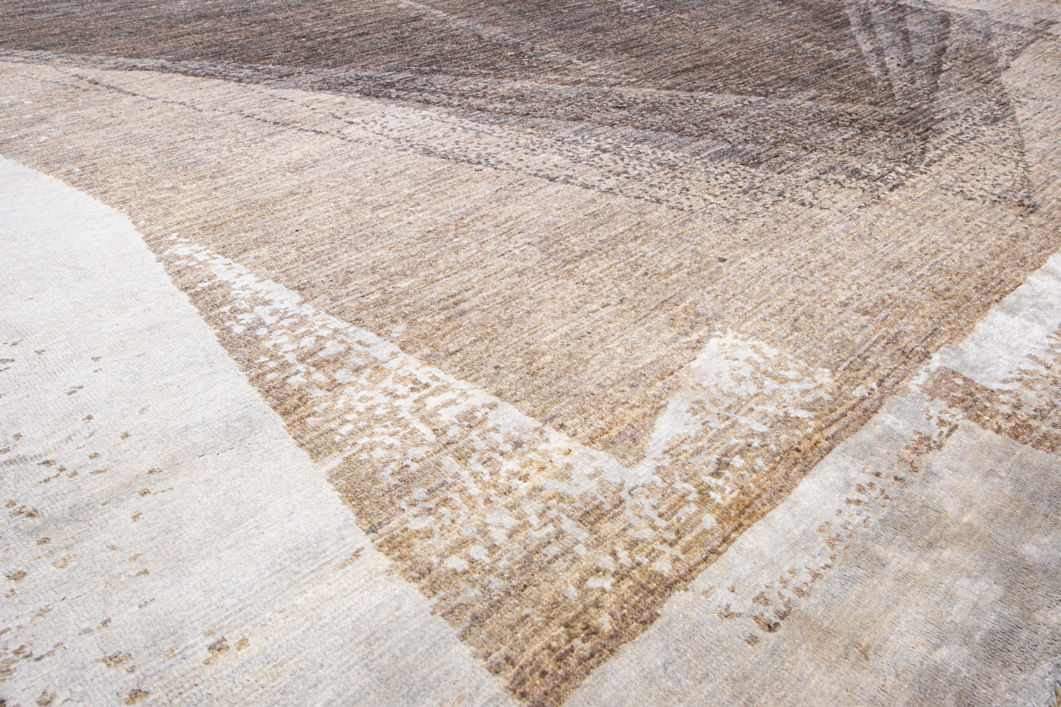 Дизайн ковров напоминает современные полотна художников-абстракционистов и производит столь же яркое и незабываемое впечатление в интерьере. Живописный эффект и необычная фактура зависят от выбора материала: натуральной шерсти, шёлка и от их сочетаний друг с другом. Ковры ткутся вручную в лучших мастерских Индии и Пакистана.