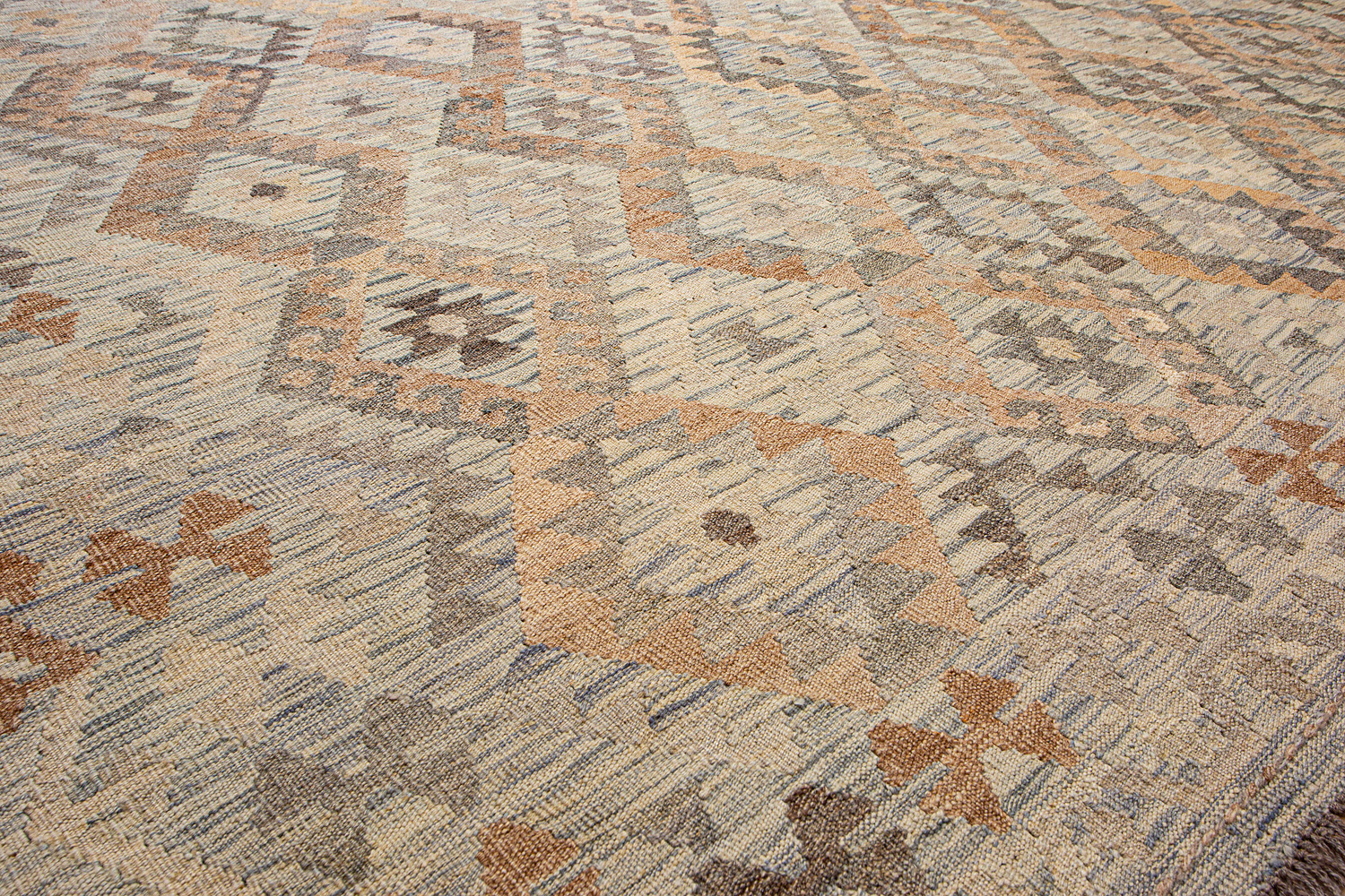 Узор ковров из коллекции Килим создаётся взаимодействием нитей утока и нитей основы, благодаря чему получается геометрический узор.