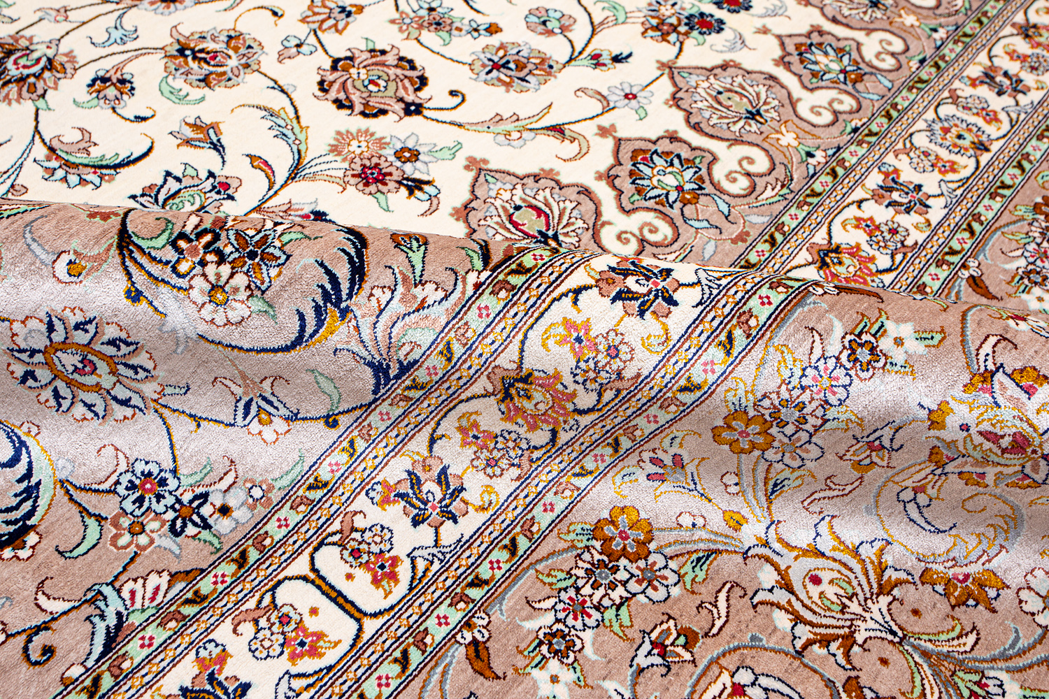 Шёлковые ковры из коллекции Кашан — одни из самых элитных и дорогих ковров в мире. Ковры из 100% шелка ткутся с очень высокой плотностью, от 1 млн до 1,5 млн узелков на 1 кв м. Их отличает очень тонкий и четкий дизайн.