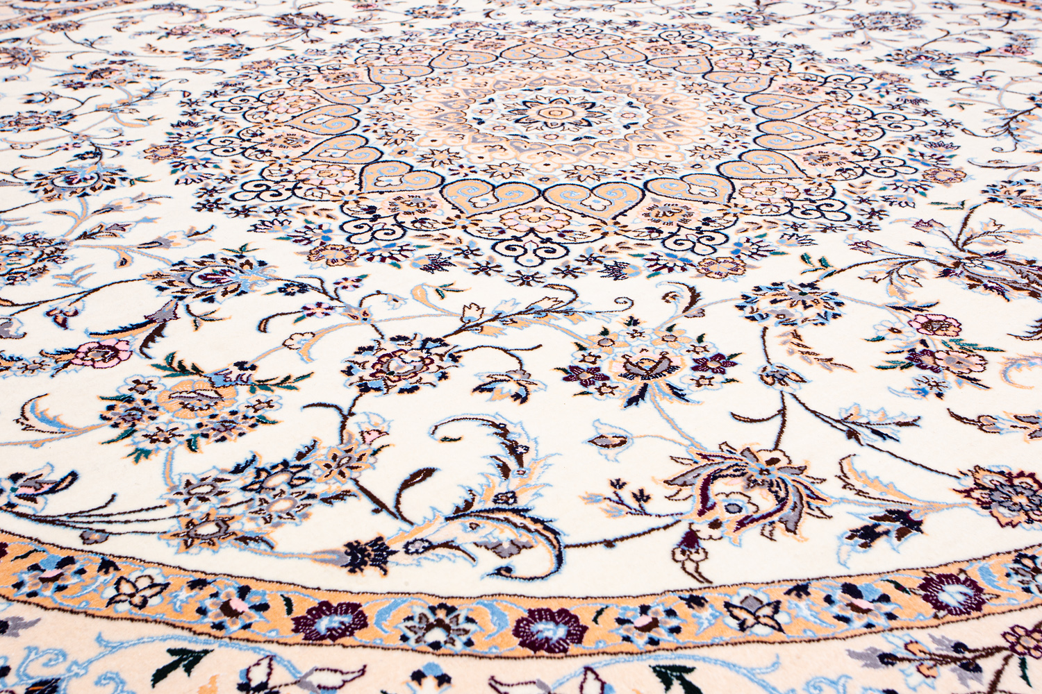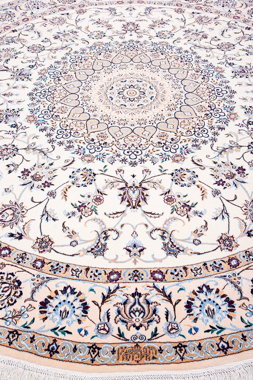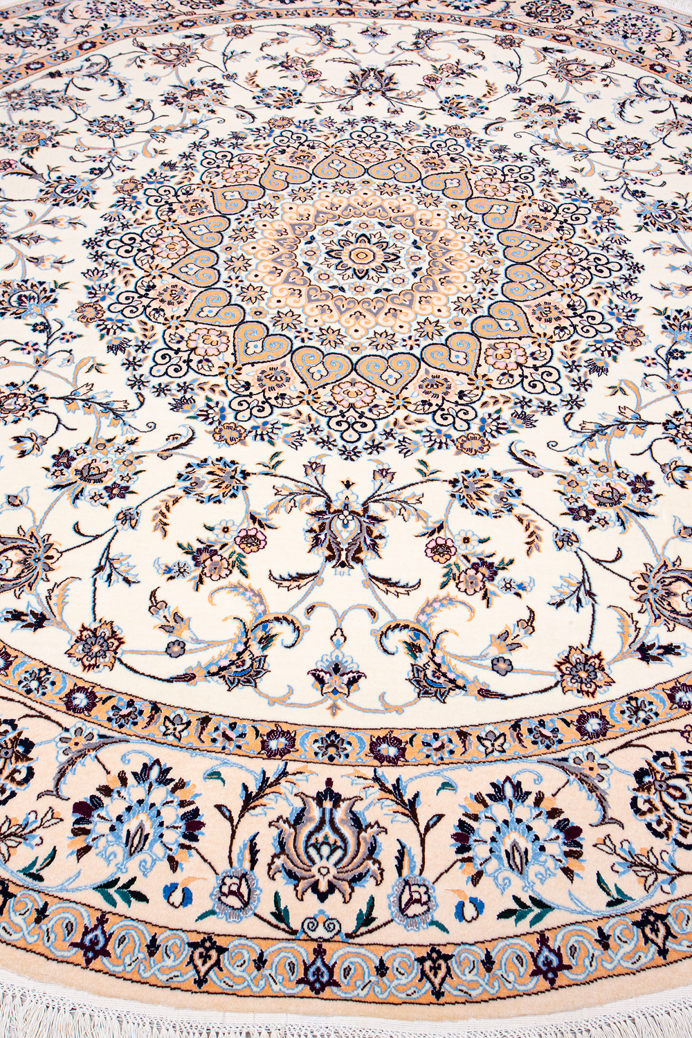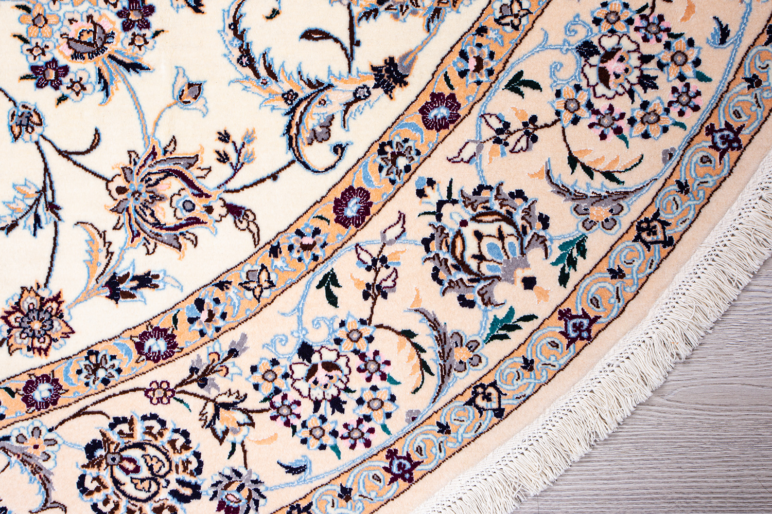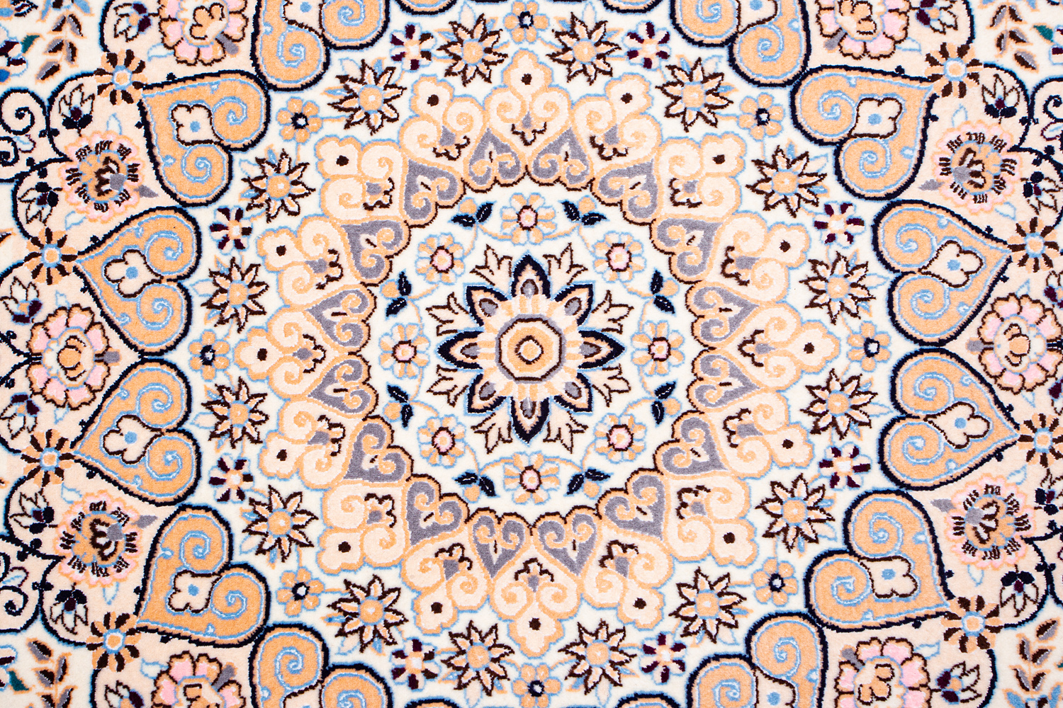Иранский город Наин знаменит своими аристократичными коврами, которые совмещают в себе классические орнаменты с элегантной цветовой гаммой, выдержанной в бежево-голубых тонах с многочисленными нюансами.