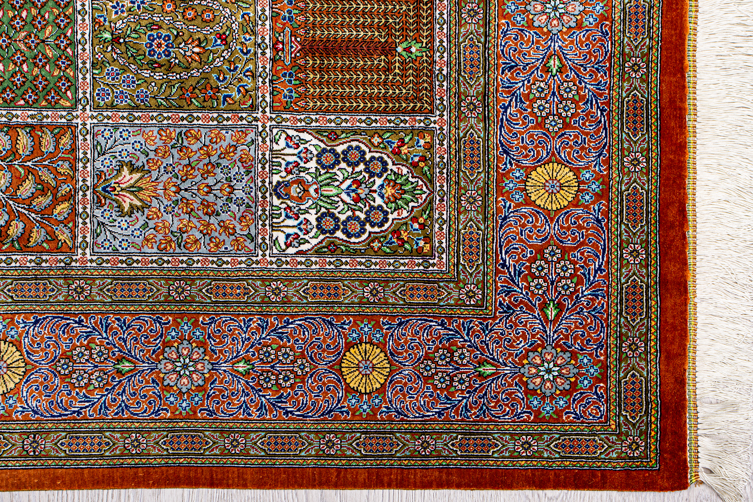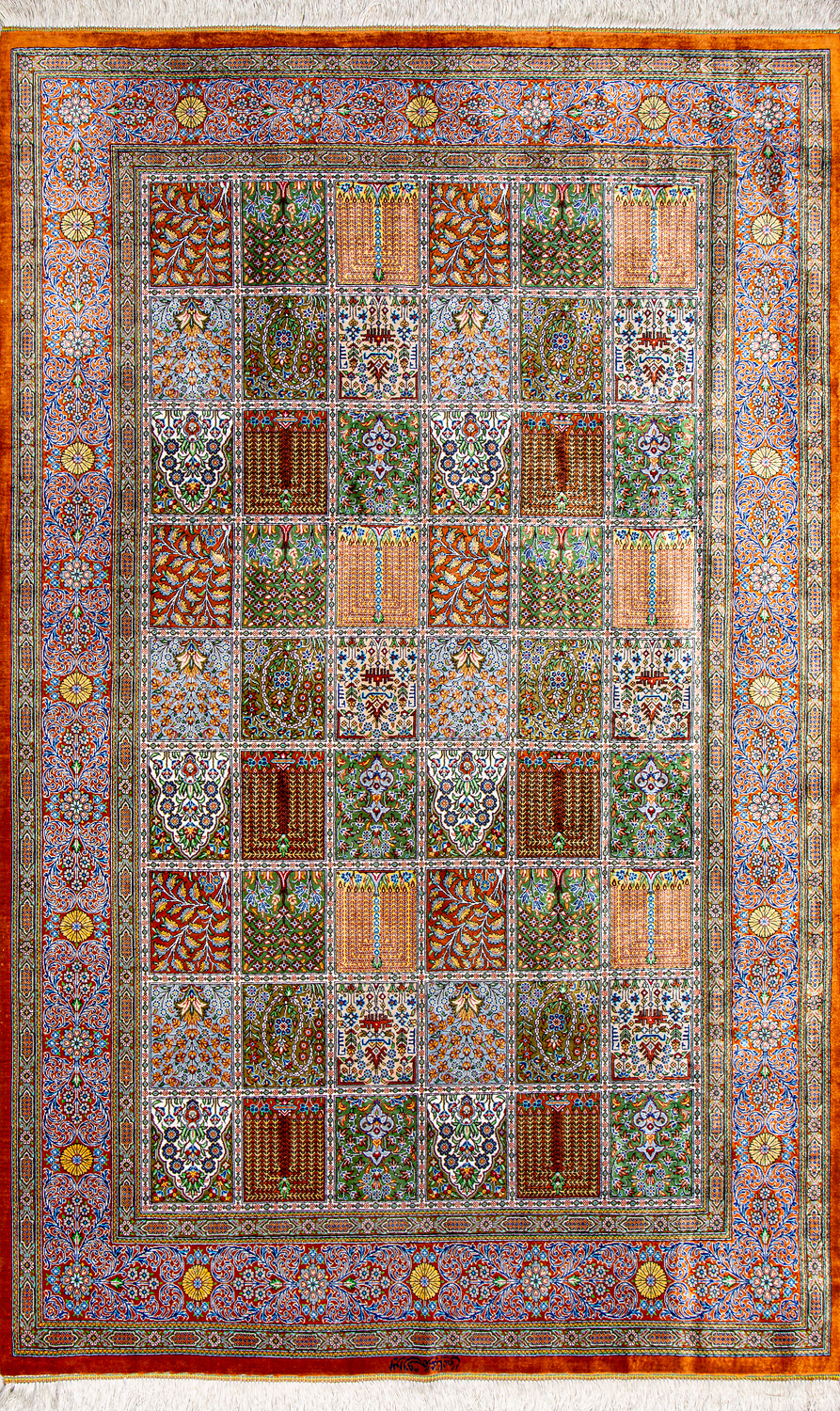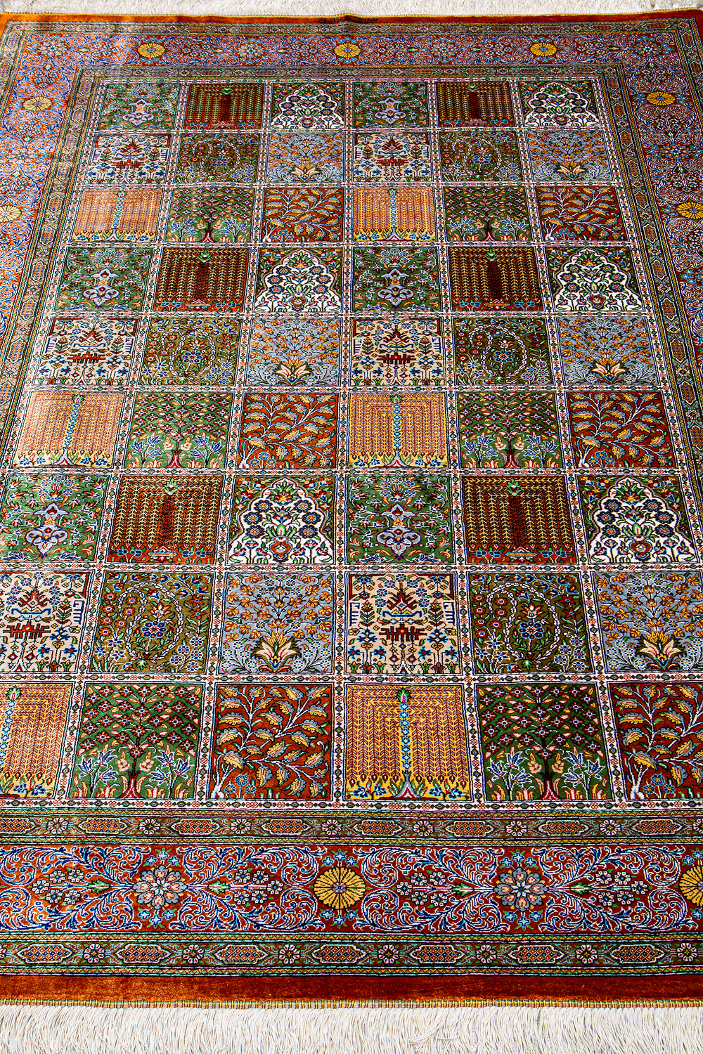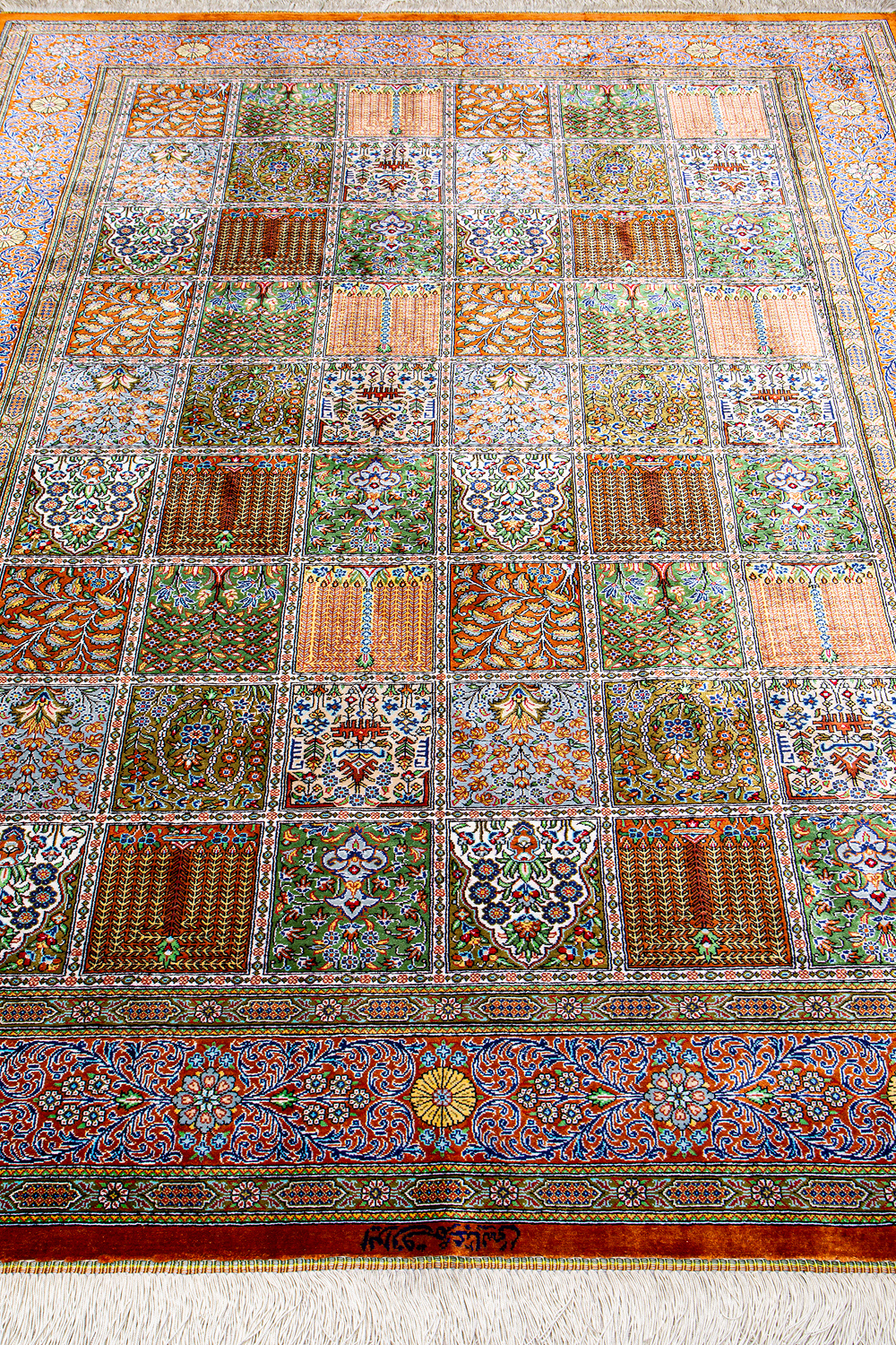 Шёлковая нить гибкая и прочная, поэтому ковры из этого материала считаются самыми износостойкими, а по количеству цветов в одном узоре ковры из коллекции Кум, пожалуй, остаются непревзойдёнными.