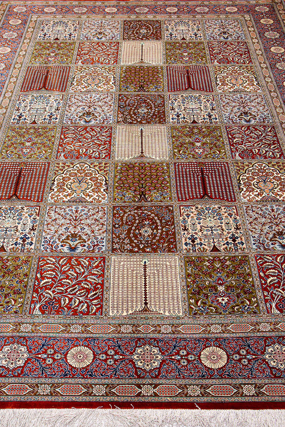 Шёлковая нить гибкая и прочная, поэтому ковры из этого материала считаются самыми износостойкими, а по количеству цветов в одном узоре ковры из коллекции Кум, пожалуй, остаются непревзойдёнными.