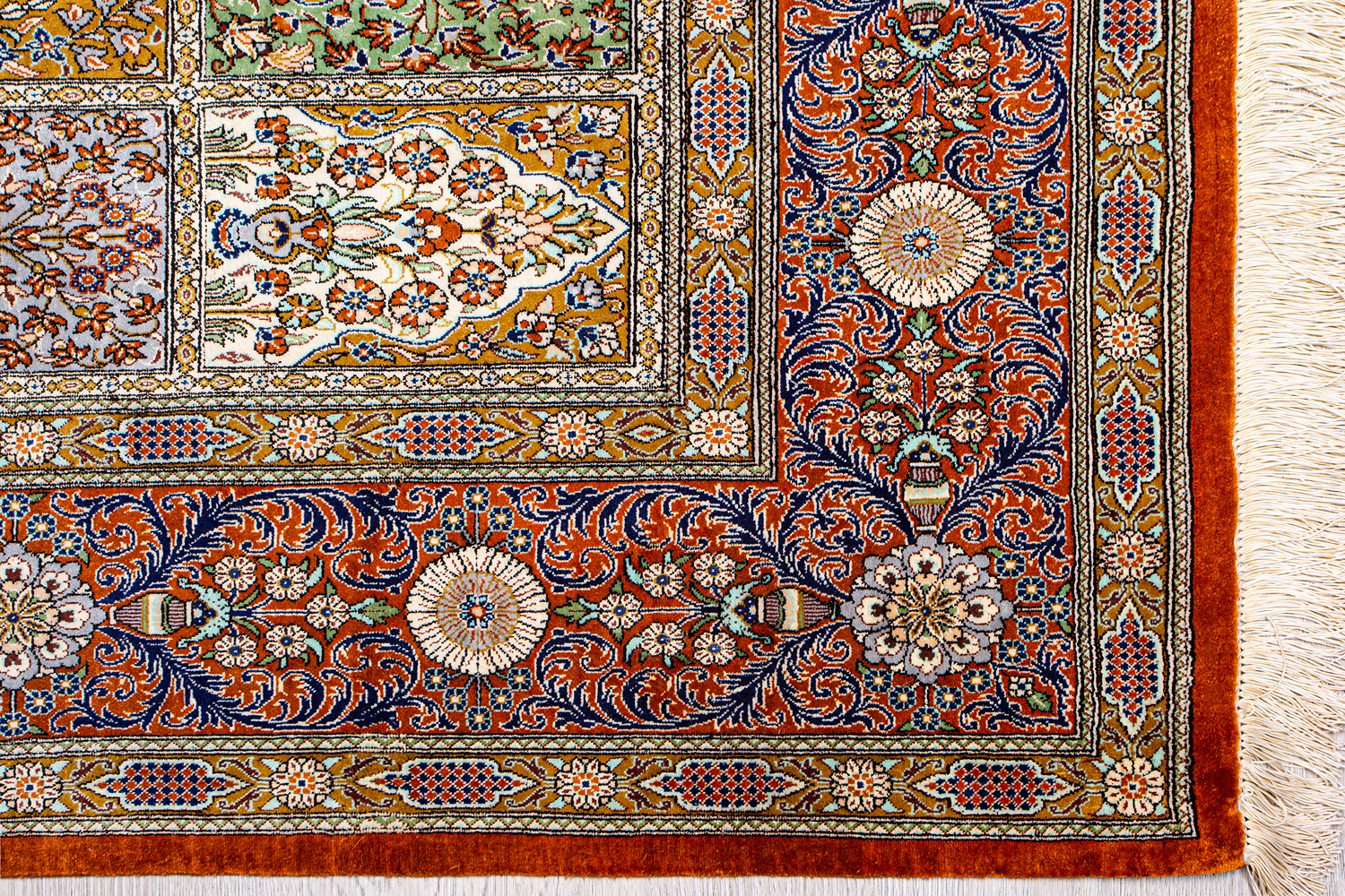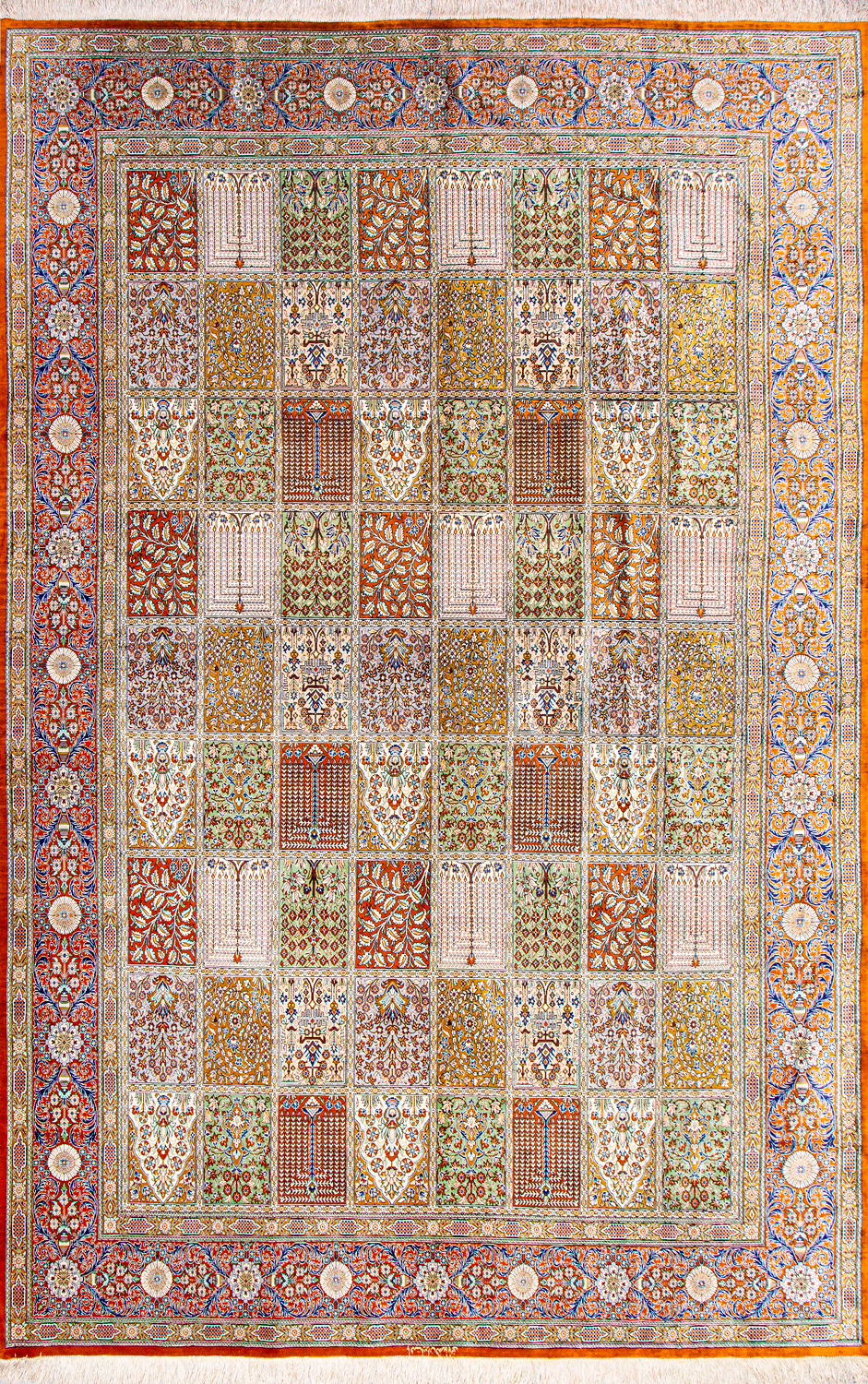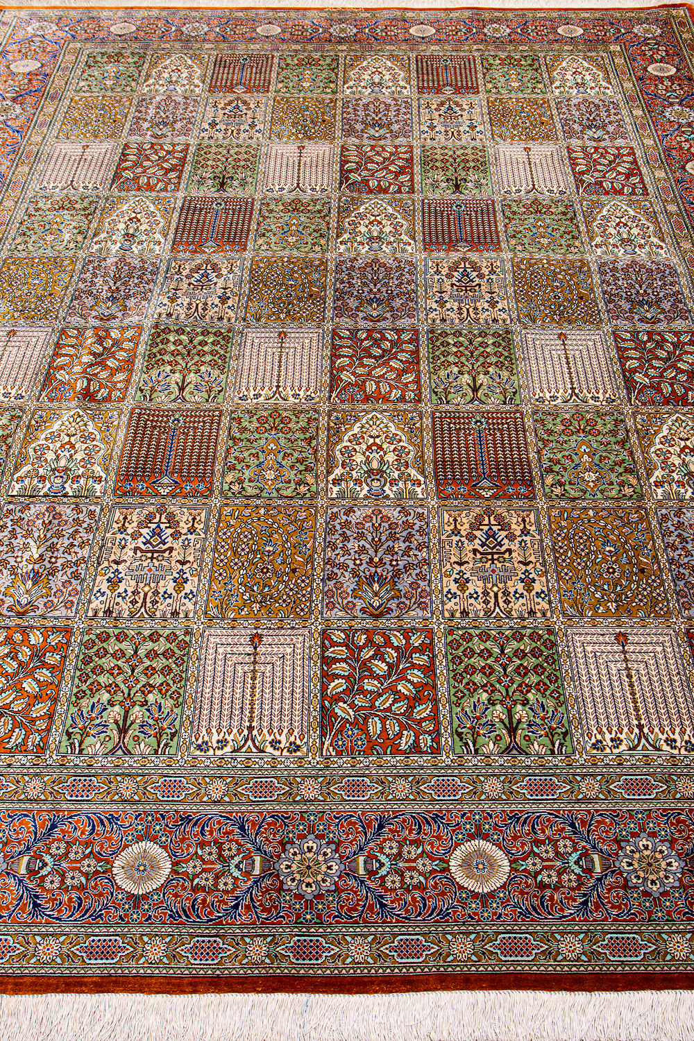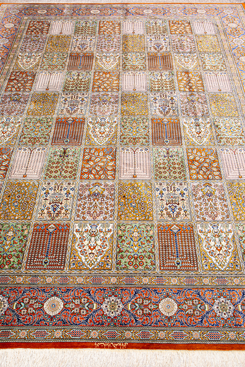 Шёлковая нить гибкая и прочная, поэтому ковры из этого материала считаются самыми износостойкими, а по количеству цветов в одном узоре ковры из коллекции Кум, пожалуй, остаются непревзойдёнными.
