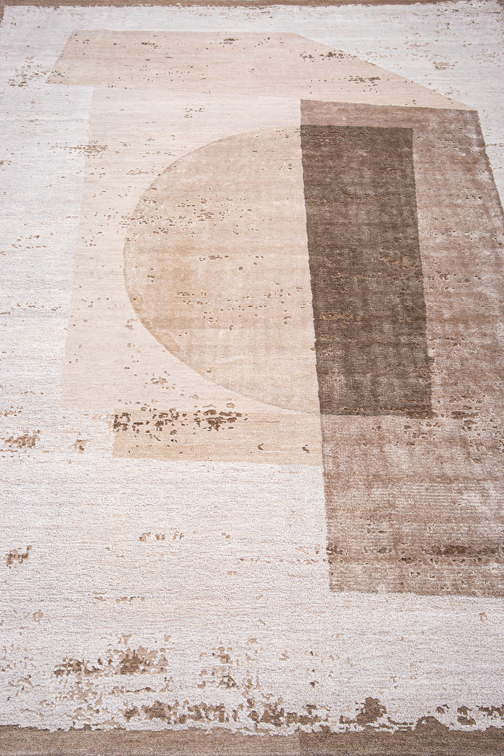 Дизайн ковров напоминает современные полотна художников-абстракционистов и производит столь же яркое и незабываемое впечатление в интерьере. Живописный эффект и необычная фактура зависят от выбора материала: натуральной шерсти, шёлка и от их сочетаний друг с другом. Ковры ткутся вручную в лучших мастерских Индии и Пакистана.