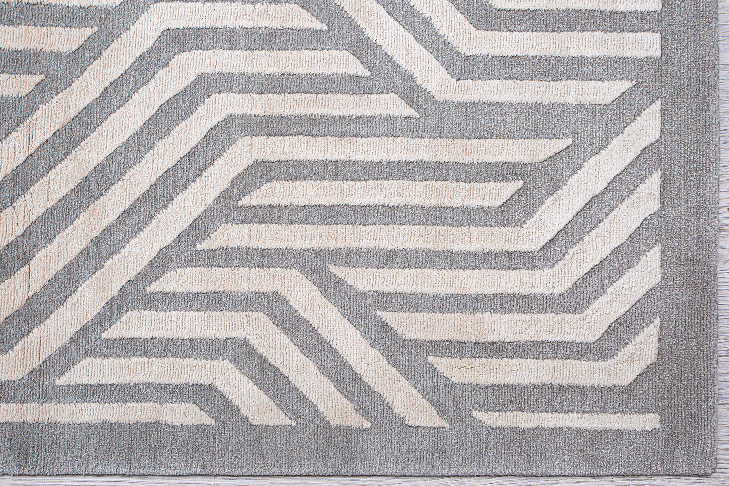 Крупные рисунки в виде линий и фигур на фактурной поверхности ковра превращаются в выразительные композиции. Они акцентируют на себе внимание и добавляют динамики в современный интерьер. Комбинации разных фигур и повторяющийся орнамент задают ритмическую основу пространству, привносят в него оригинальные оптические иллюзии.