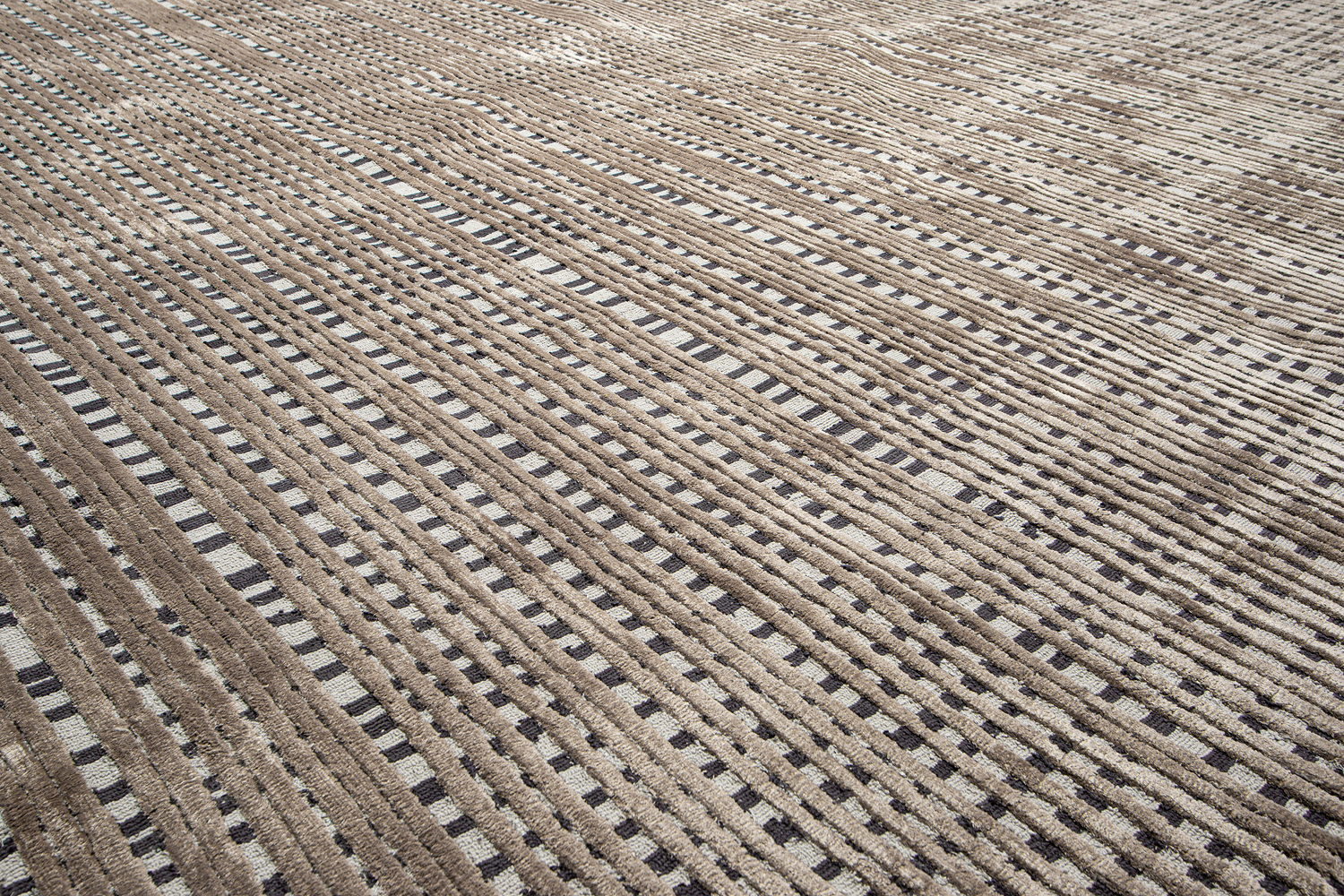 Дизайн ковров напоминает современные полотна художников-абстракционистов и производит столь же яркое и незабываемое впечатление в интерьере. Живописный эффект и необычная фактура зависят от выбора материала: натуральной шерсти, шёлка и от их сочетаний друг с другом. Ковры ткутся вручную в лучших мастерских Индии и Пакистана.