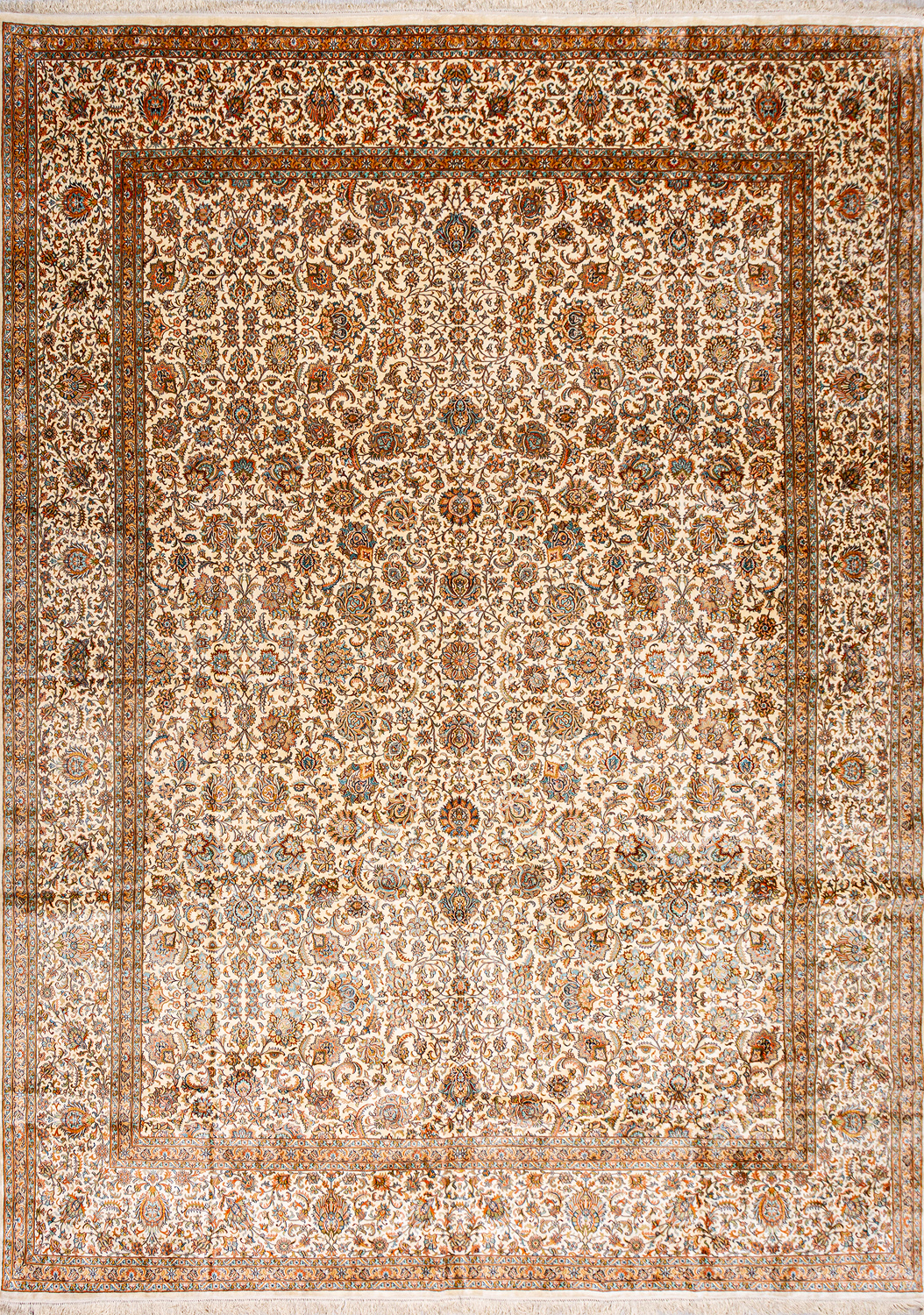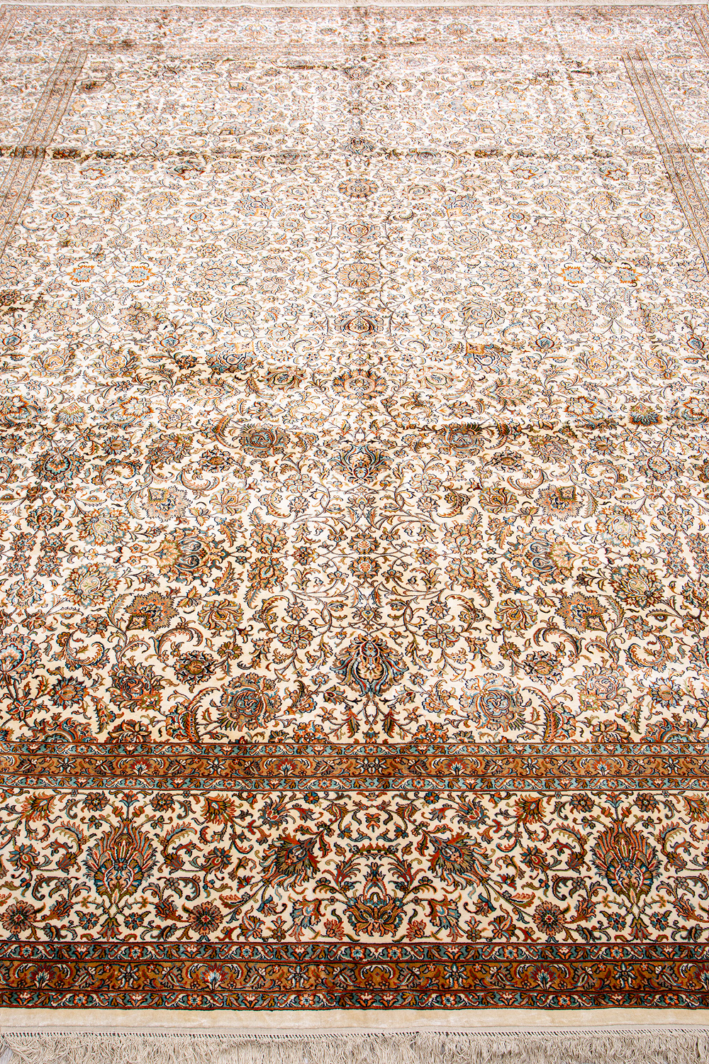 Ковры из коллекции Кашмир ткутся по традиционной технологии из нежнейшего кашмирского шелка. Лучшие произведения индийских мастеров отличает высокая узелковая плотность, прочность и яркость цветов.
