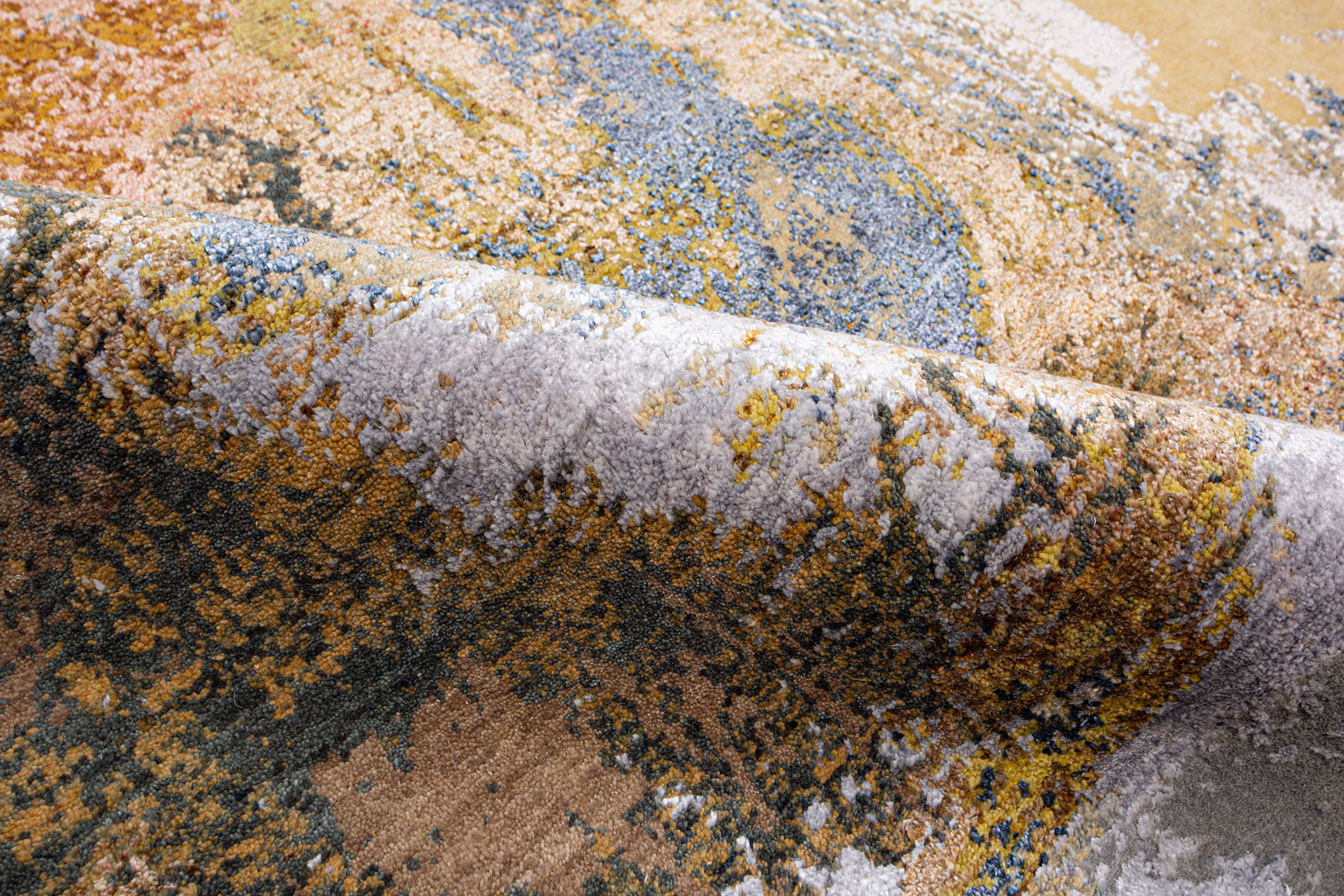 Дизайн ковров напоминает современные полотна художников-абстракционистов и производит столь же яркое и незабываемое впечатление в интерьере. Живописный эффект и необычная фактура зависят от выбора материала: натуральной шерсти, шёлка и от их сочетаний друг с другом. Ковры ткутся вручную в лучших мастерских Индии и Пакистана.