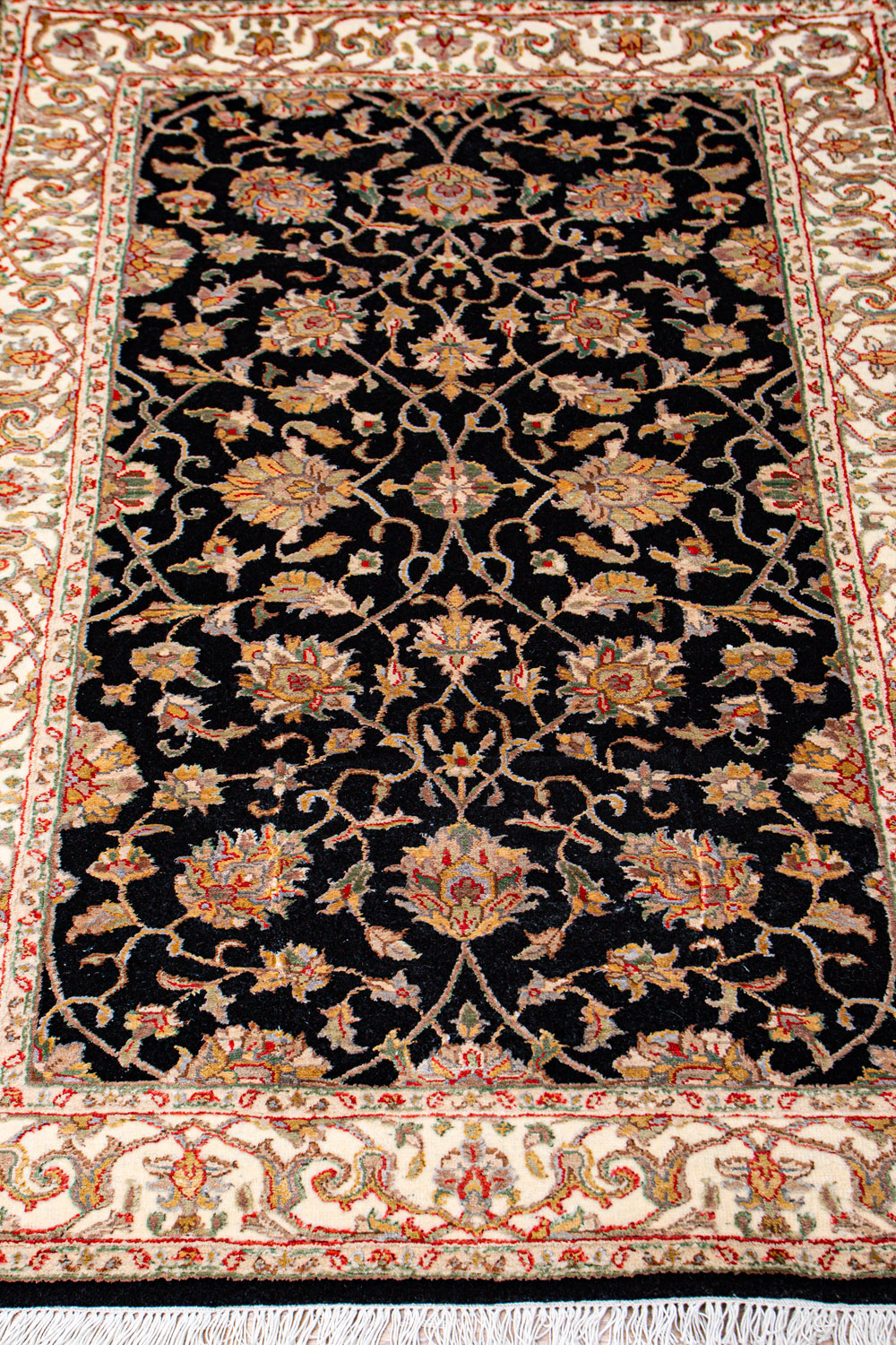 Более пяти веков назад в городе Агра зародилась знаменитая индийская школа ковроткачества, прославившаяся не меньше, чем расположенный здесь же Тадж-Махал. Мощное персидское влияние, помноженное на местный колорит, привело к появлению оригинальных орнаментов с богатыми растительными узорами — причудливым цветам, ветвям и листьям, разбросанным по всему полю ковра.