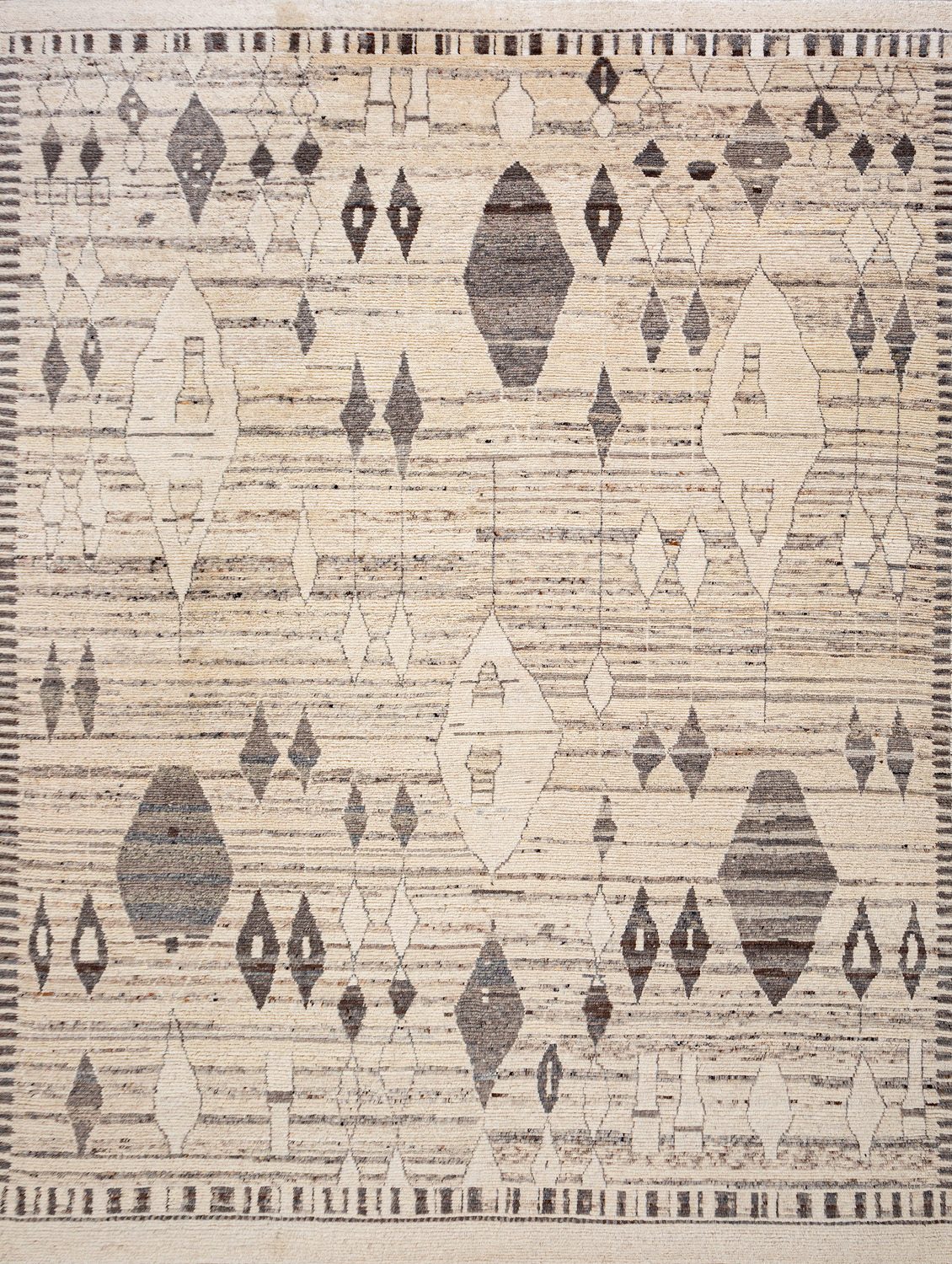 Дизайн ковров напоминает современные полотна художников-абстракционистов и производит столь же яркое и незабываемое впечатление в интерьере. Живописный эффект и необычная фактура зависят от выбора материала: натуральной шерсти, шёлка и от их сочетаний друг с другом. Ковры ткутся вручную в лучших мастерских Индии и Пакистана.