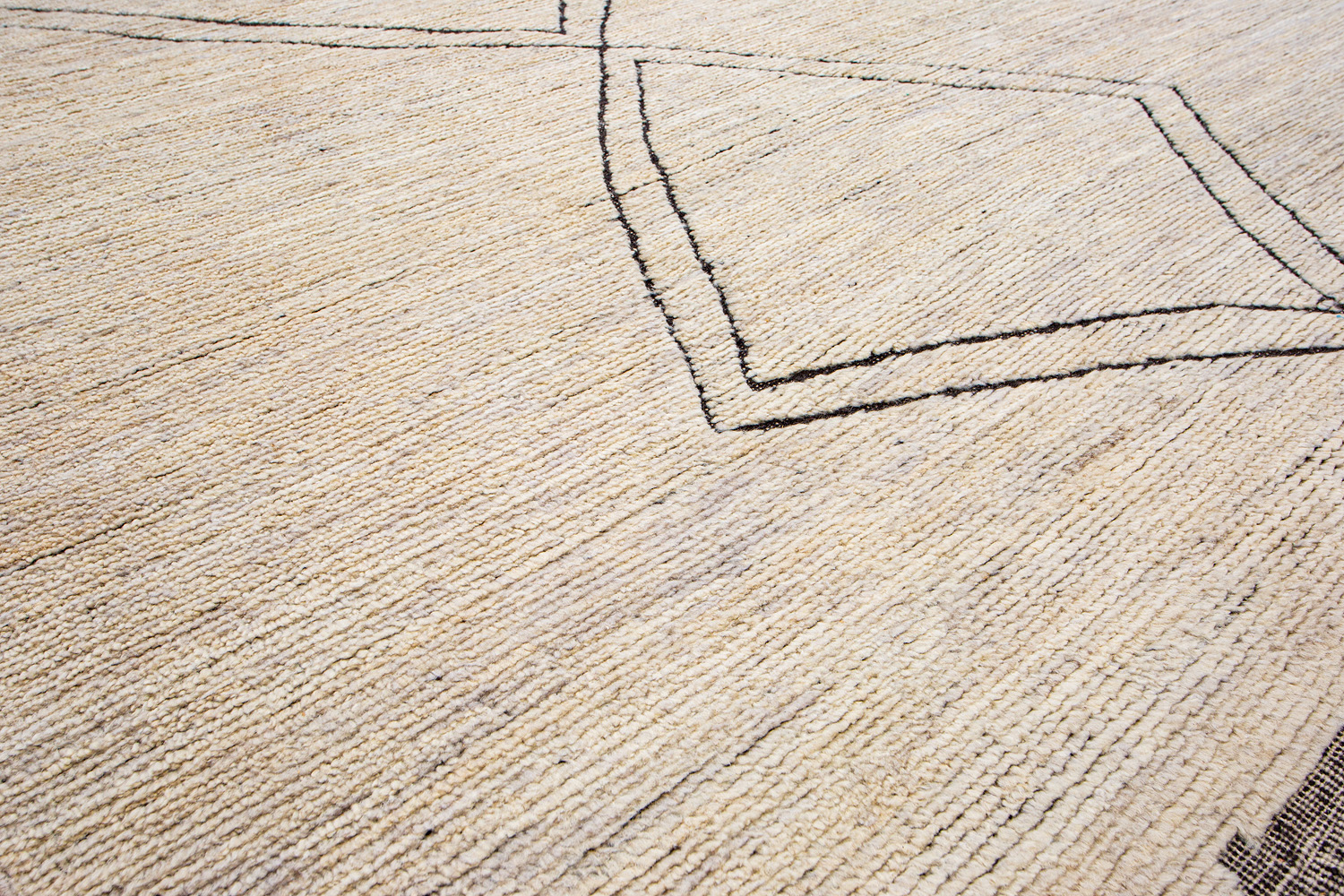 Дизайн ковров напоминает современные полотна художников-абстракционистов и производит столь же яркое и незабываемое впечатление в интерьере. Живописный эффект и необычная фактура зависят от выбора материала: натуральной шерсти, шёлка и от их сочетаний друг с другом. Ковры ткутся вручную в лучших мастерских Индии и Пакистана.