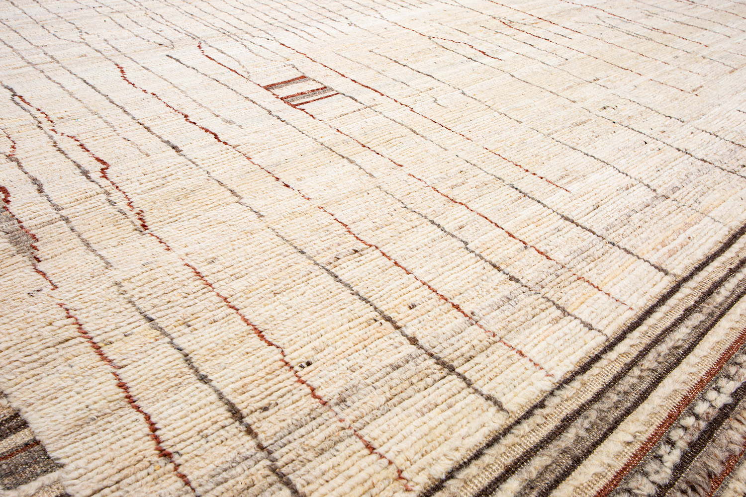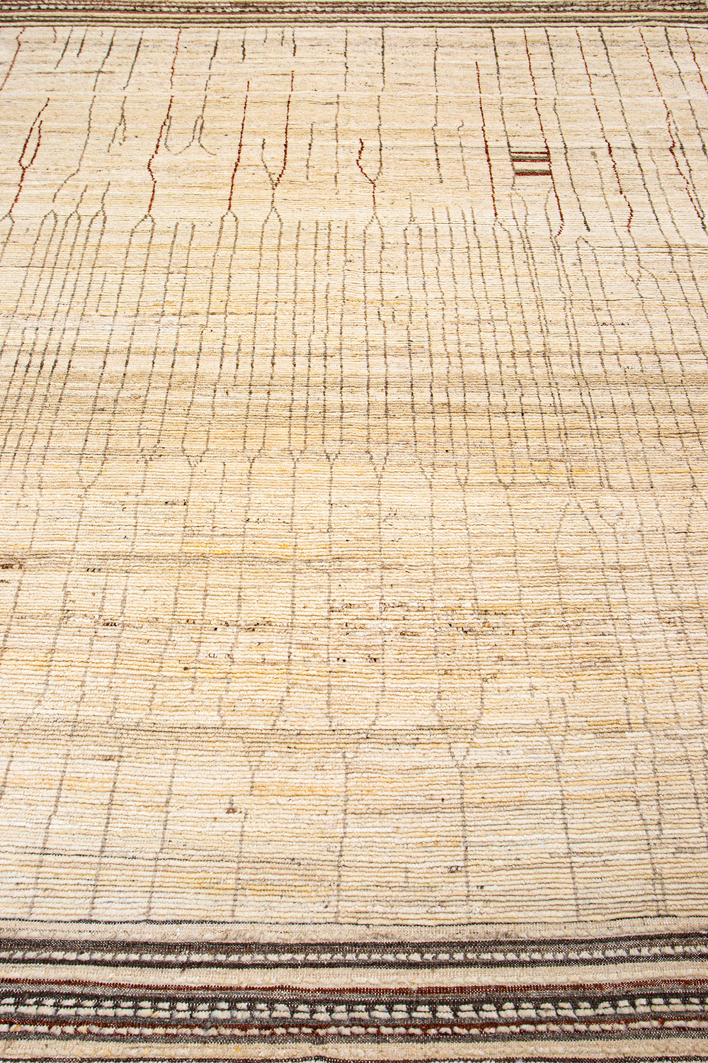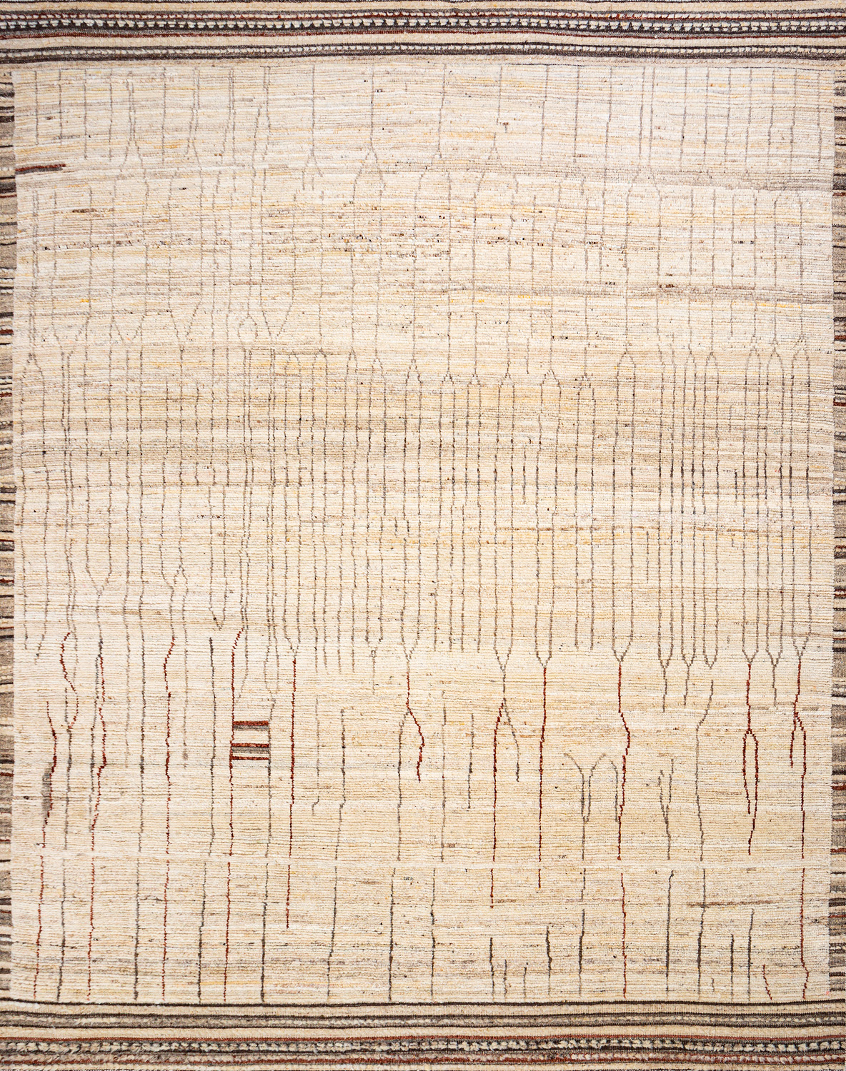 Дизайн ковров напоминает современные полотна художников-абстракционистов и производит столь же яркое и незабываемое впечатление в интерьере. Живописный эффект и необычная фактура зависят от выбора материала: натуральной шерсти, шёлка и от их сочетаний друг с другом. Ковры ткутся вручную в лучших мастерских Индии и Пакистана.