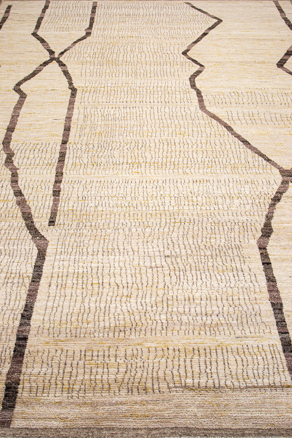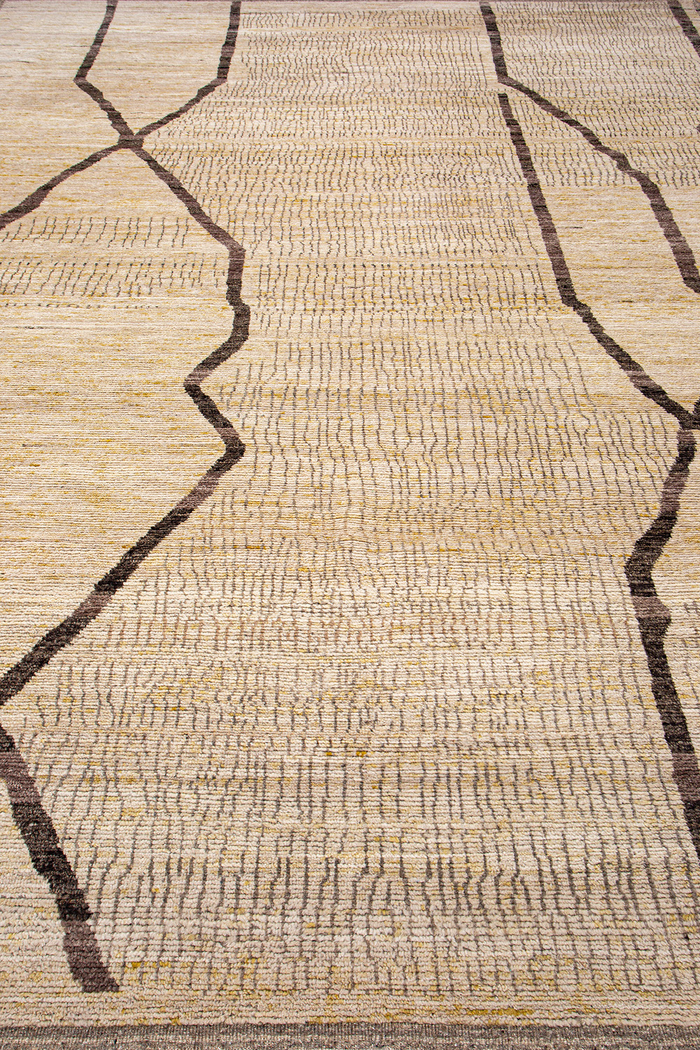 Дизайн ковров напоминает современные полотна художников-абстракционистов и производит столь же яркое и незабываемое впечатление в интерьере. Живописный эффект и необычная фактура зависят от выбора материала: натуральной шерсти, шёлка и от их сочетаний друг с другом. Ковры ткутся вручную в лучших мастерских Индии и Пакистана.